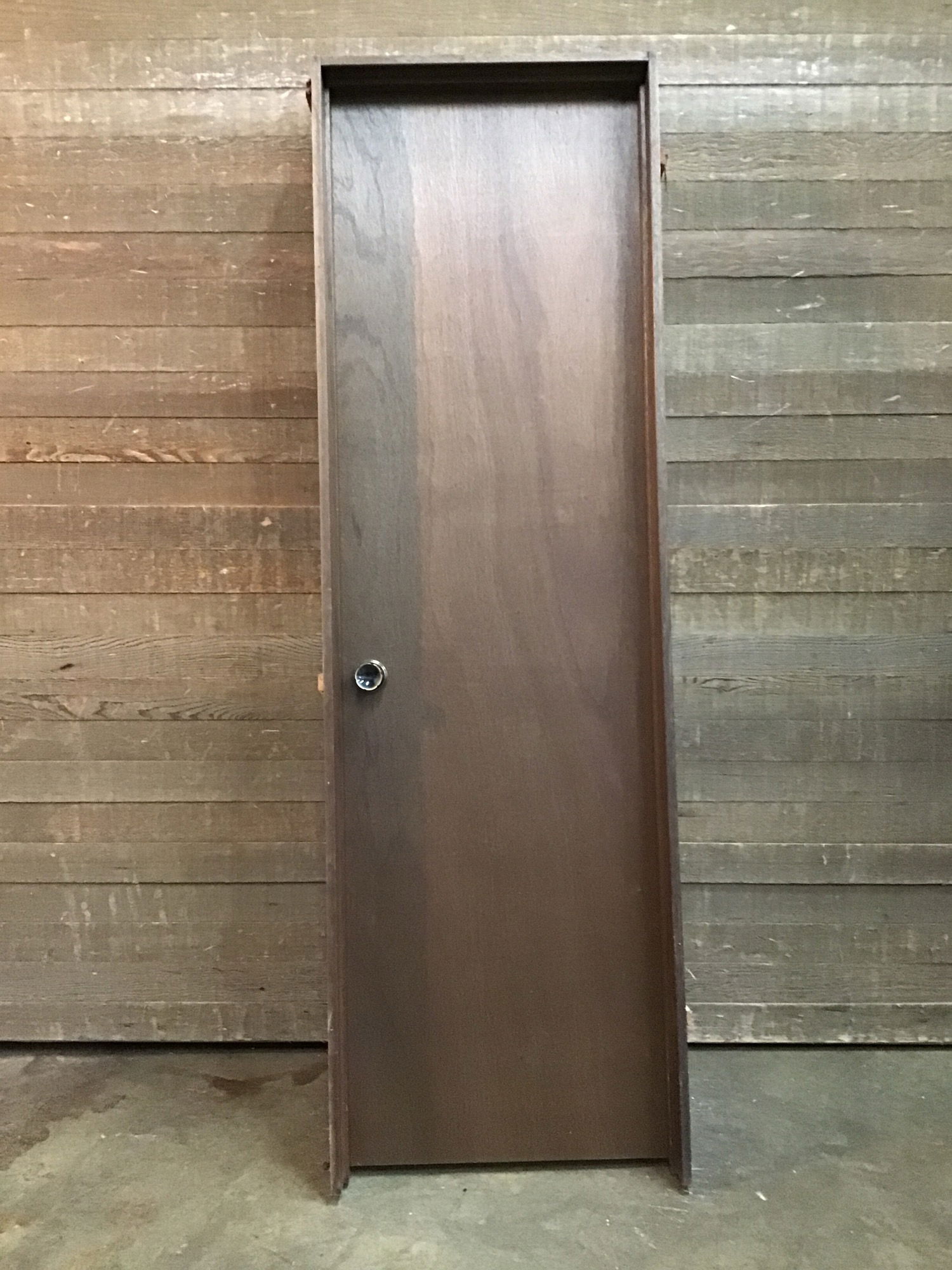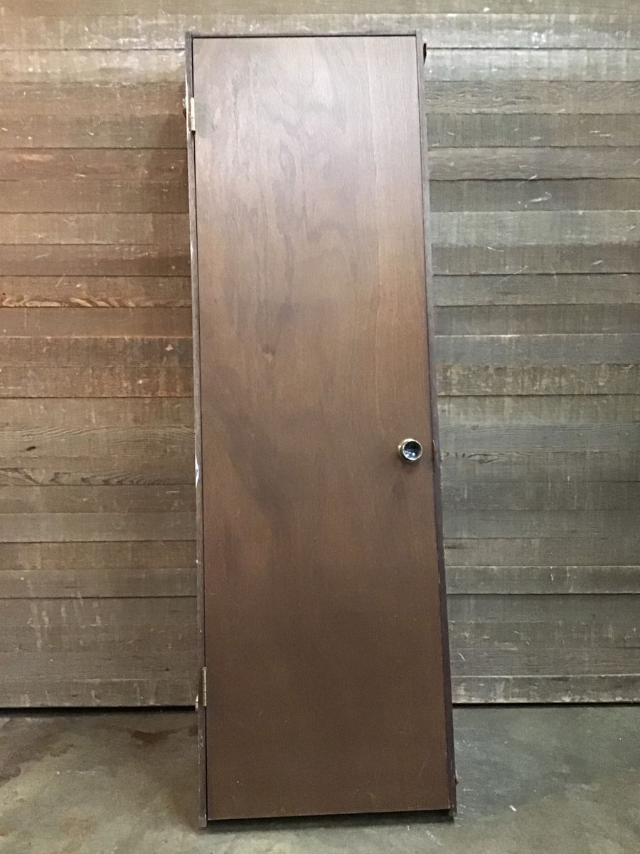 Hollow core pre-hung door with warm stained mahogany veneer. Has some small scratches and other cosmetic imperfections from previous use.