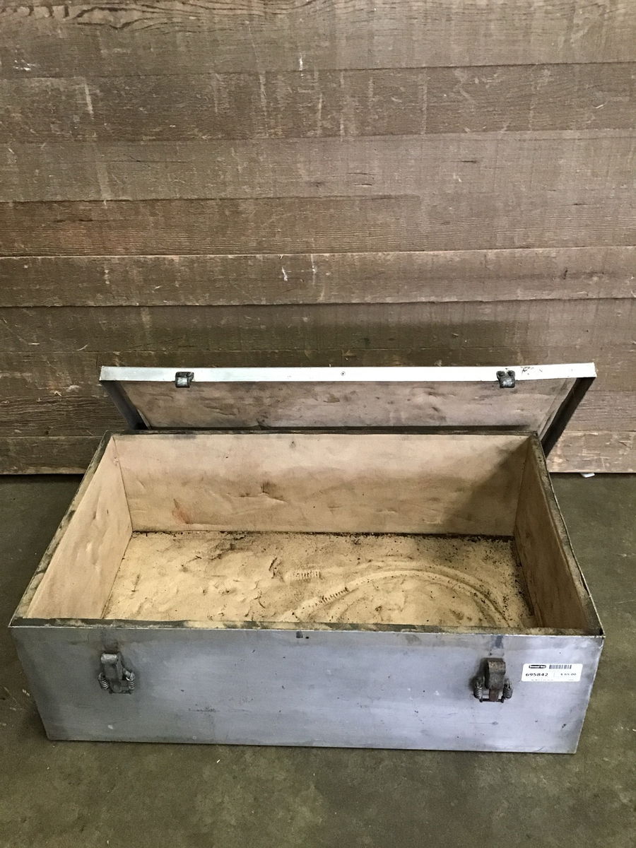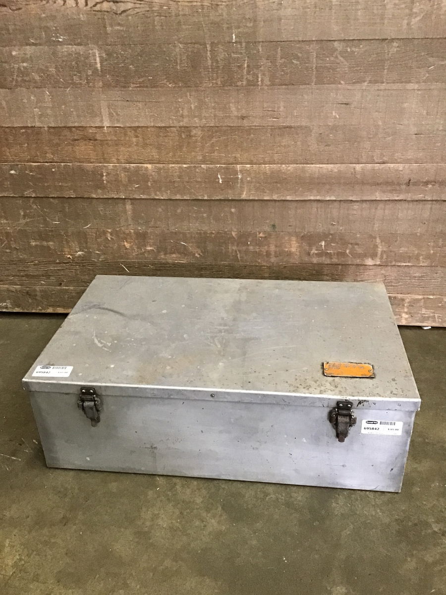 Aluminum storage box with an insulated inner layer. One latch seems finicky but it does close down. Could make a great exterior tool storage box or ammo storage!