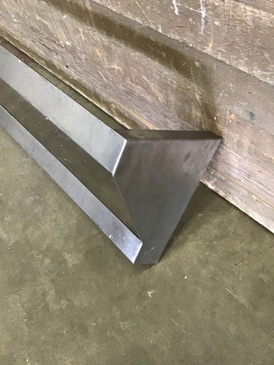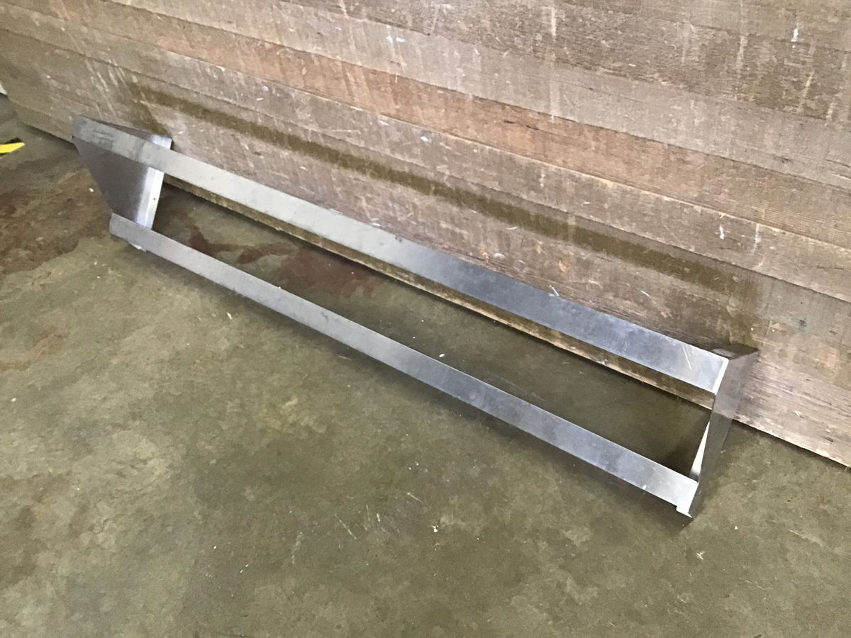 Heavy duty, wall mount, stainless steel pot rack, picked up from a local brewery. This shelf has two bars across to hang your pots from. Perfect for an industrial kitchen or to elevate your home kitchen.