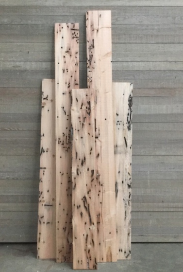 1x10 Roughsawn teredo Fir, sold by the linear foot. Some Hem and Spruce mixed in. "Teredo lumber" is milled from salvaged boom logs that have seen 30-70 years of use on the waterways of the PNW to transport lumber from forest to mill. The teredo clam likes to call these logs home by burrowing deep and creating unique and intricate patterns in the wood. Most of these boom logs were old growth. Beautiful wood that makes a statement. All lumber has been milled, cleaned, and kiln dried out on the Olympic Peninsula. Lengths vary, most from 4-8'. Please note, this is a bulk item and can not be put on hold. Come see us in person and get the ones you like!