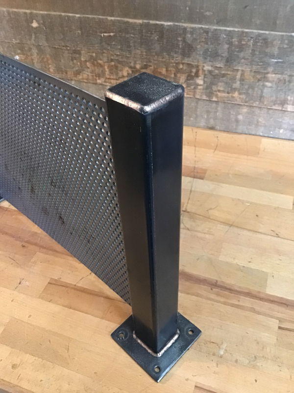 Heavy duty steel table dividers in great shape picked up from a local brewery. Features two 2"x2" steel legs with 4"x4" mounting brackets. Between the two legs is a 1/16" thick piece of steel mesh. Great for restaurants/cafes! Photo may be representational.
