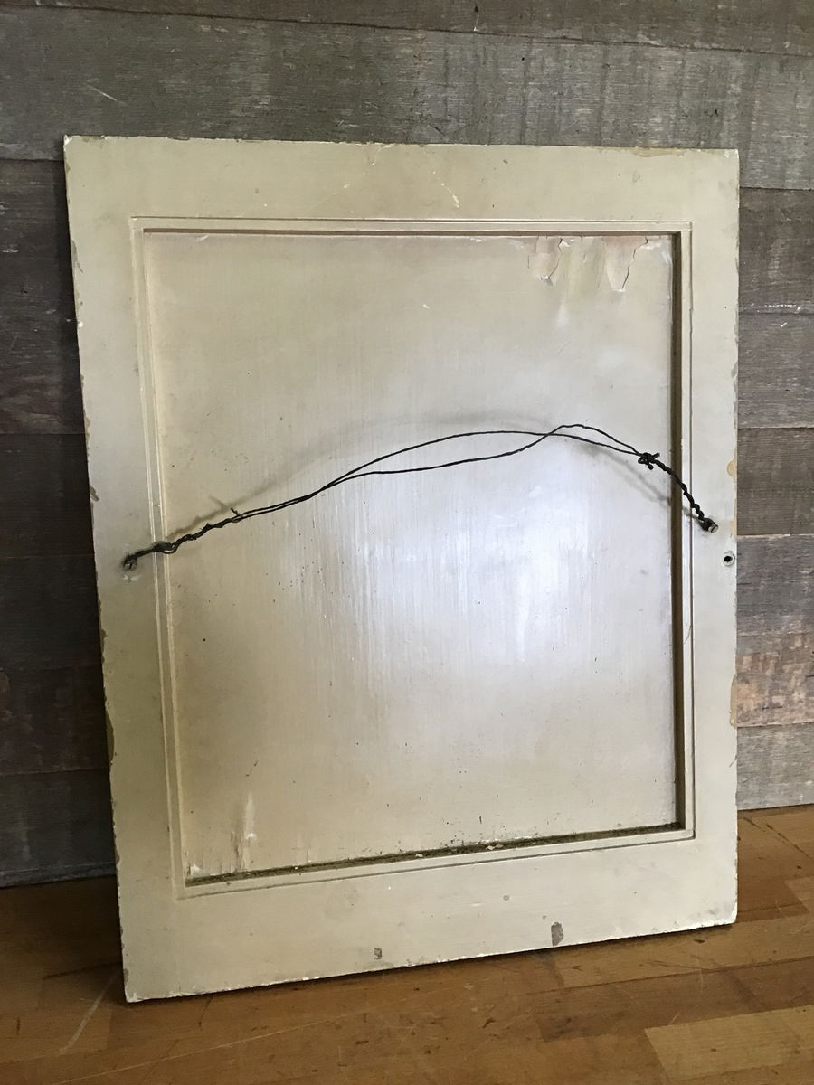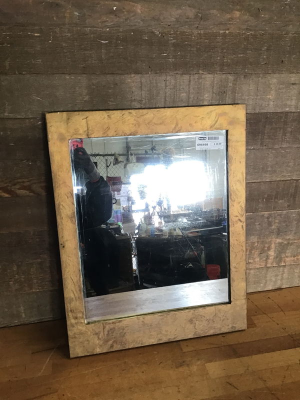 Small vintage wood framed mirror. Looks like its been painted too many times. Still has a nice vintage look to it if that's your vibe. No cracks to glass.