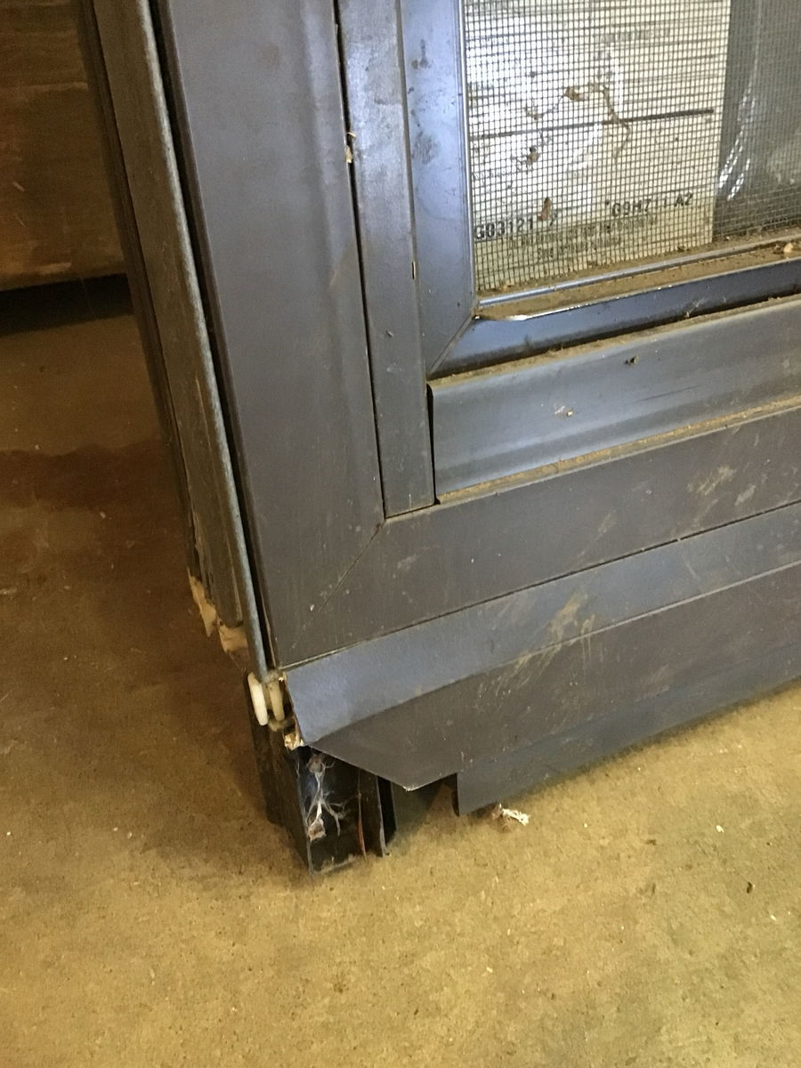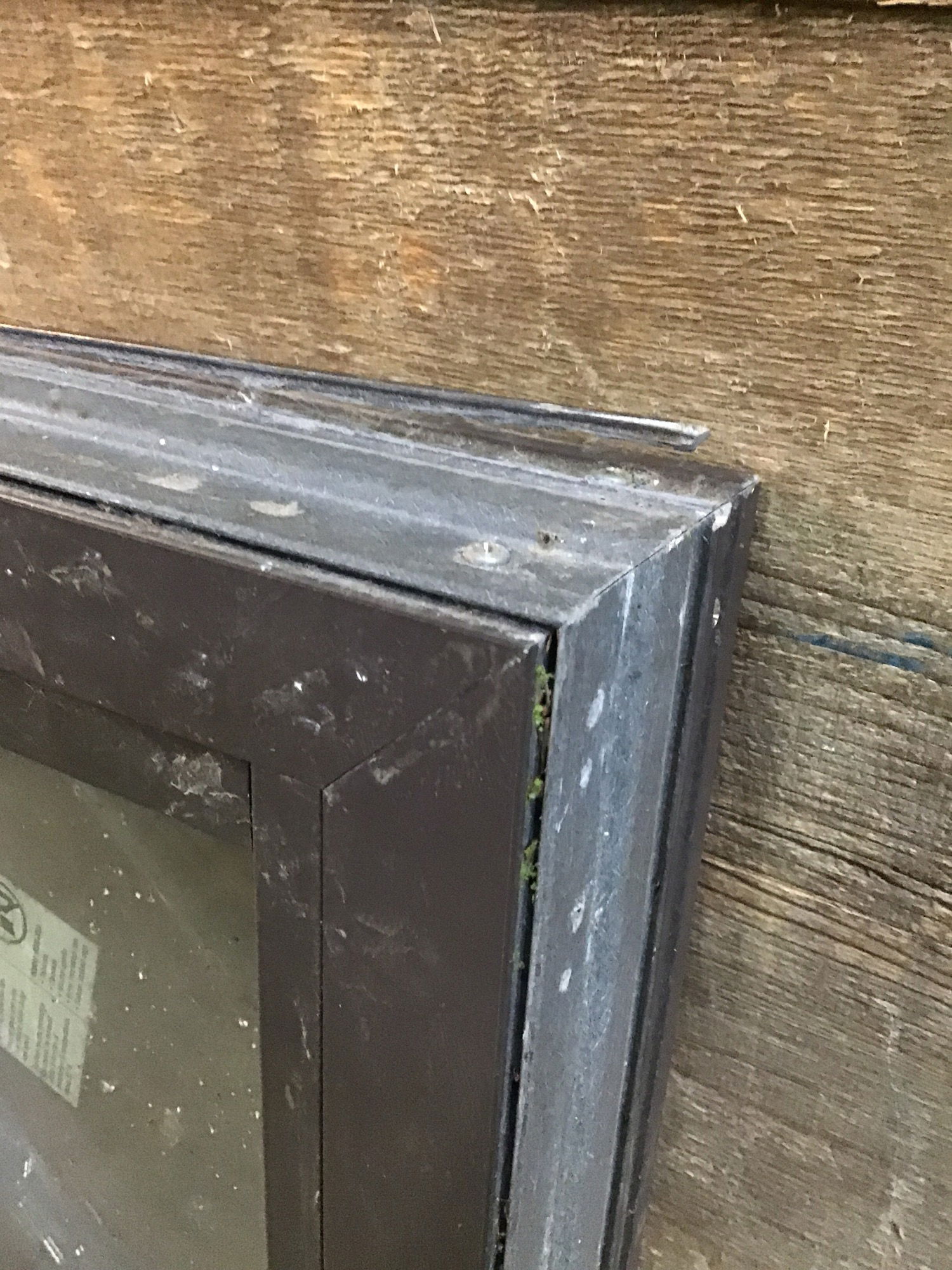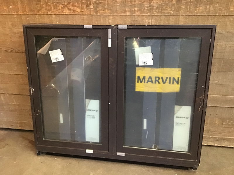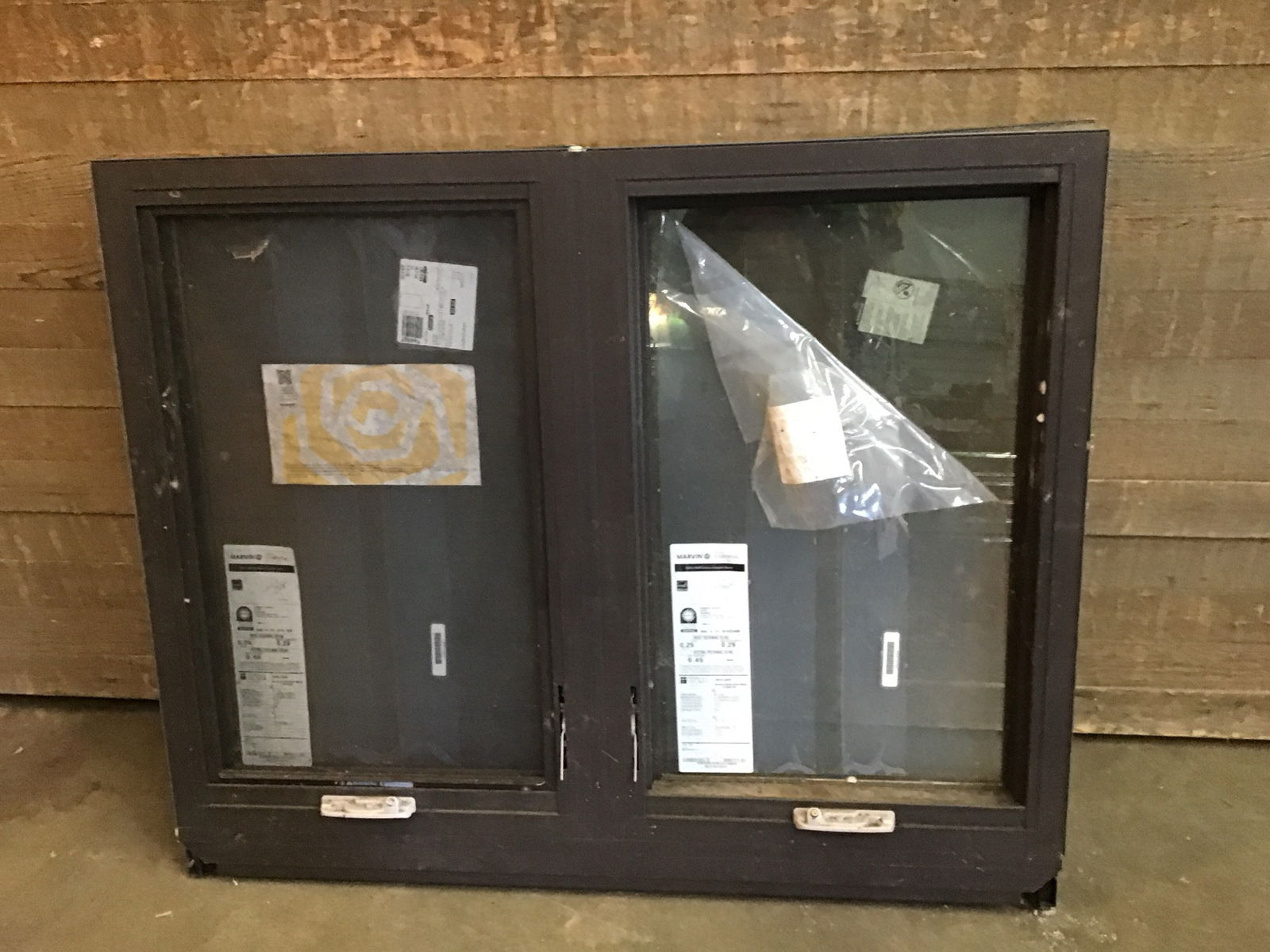Marvin fiberglass double casement window. This once had fixed windows attached to the top and bottom that have since been removed. One screen included. The crank handles that are included were not original and don't match and will need to be replaced if desired. There's some minor damage to the trim due to poor storage, but still looks structurally sound. Height includes 2.5" of a remnant piece that attached another window. Price reflects funkiness.