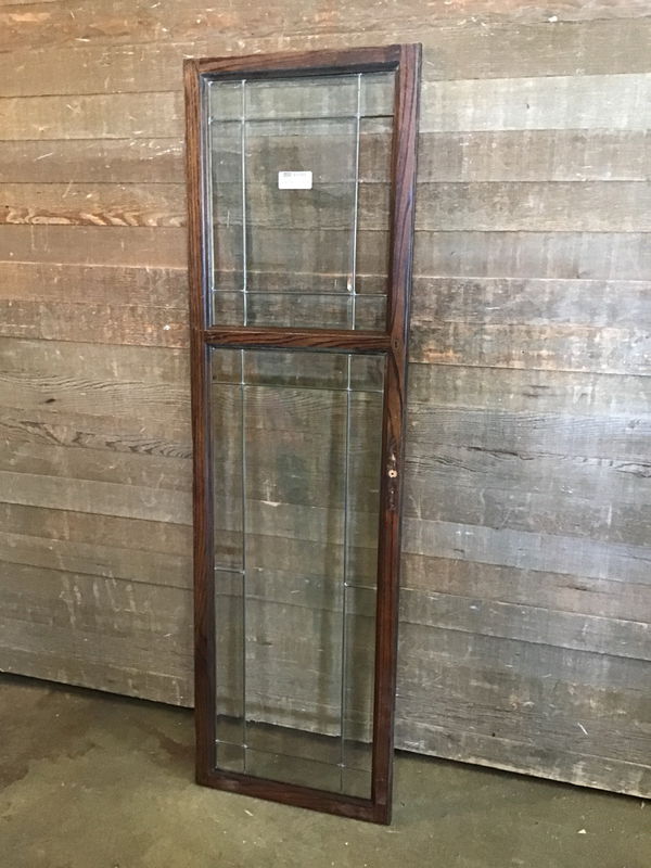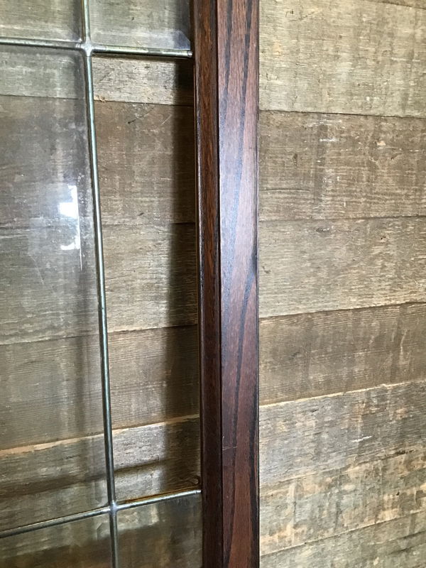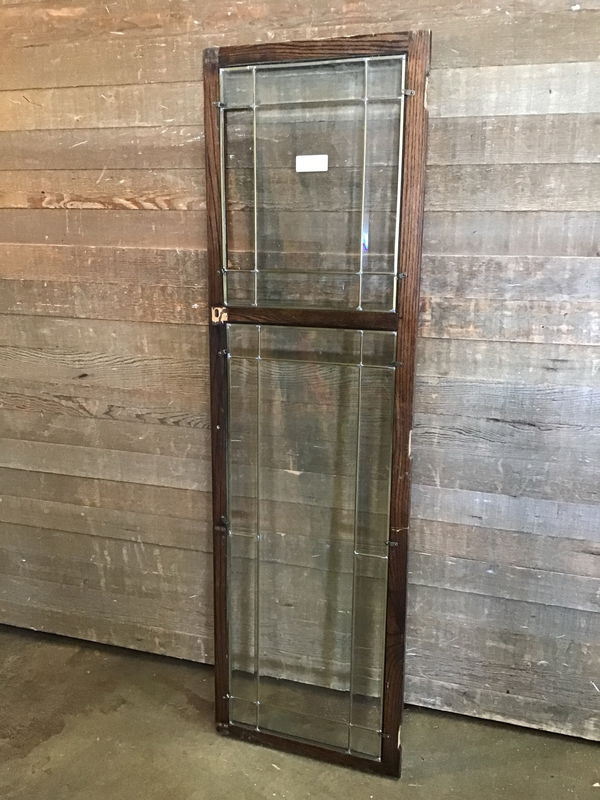 Single cabinet door with beautiful lead divided beveled glass and a solid wood frame. Only one pane is missing. Ready to repurpose!