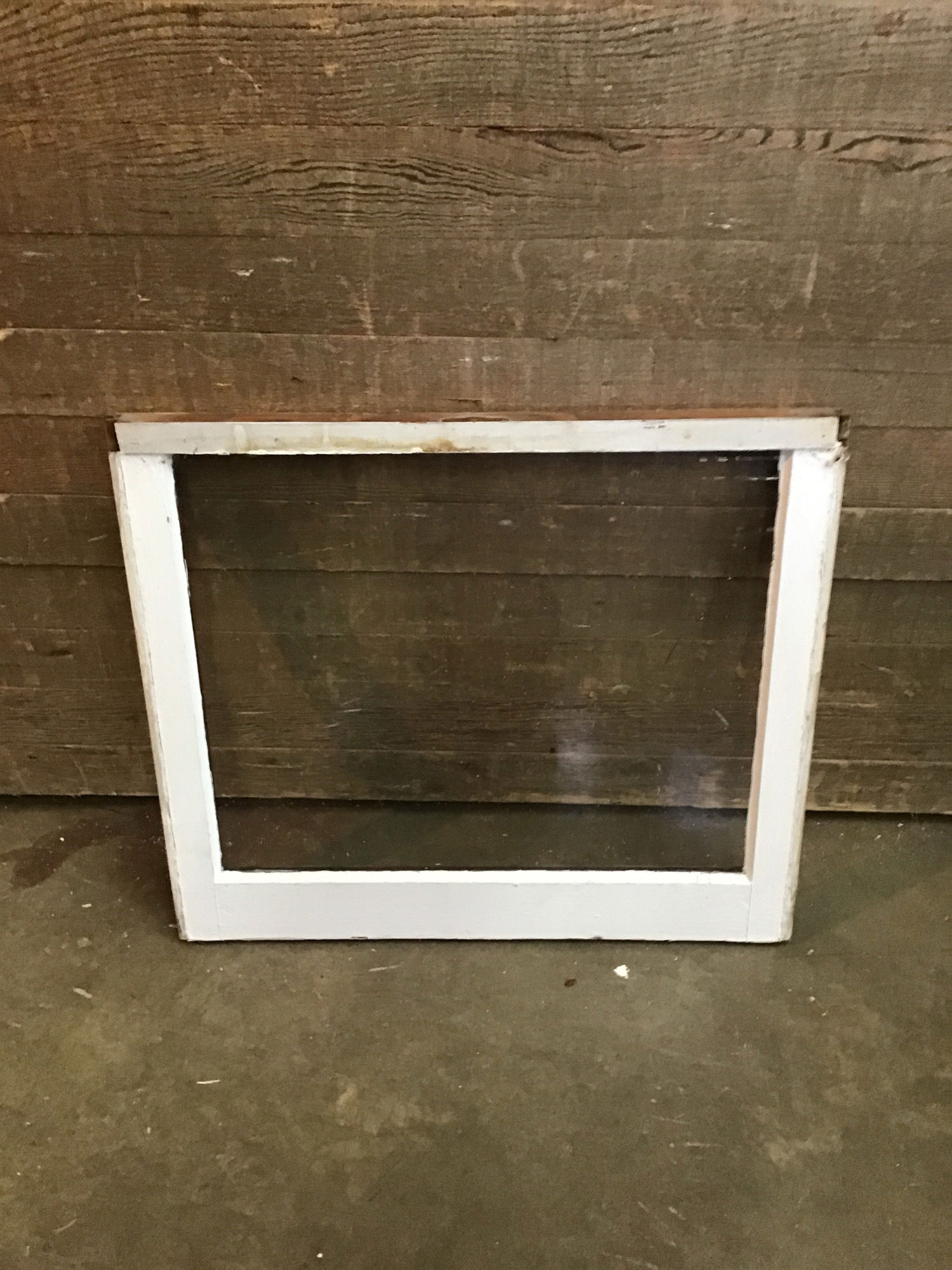 Vintage Fir wood window sash with a single pane of glass. Painted on one side and Fir on the other. Great for DIY projects like cold frames, greenhouses, and hanging partitions.