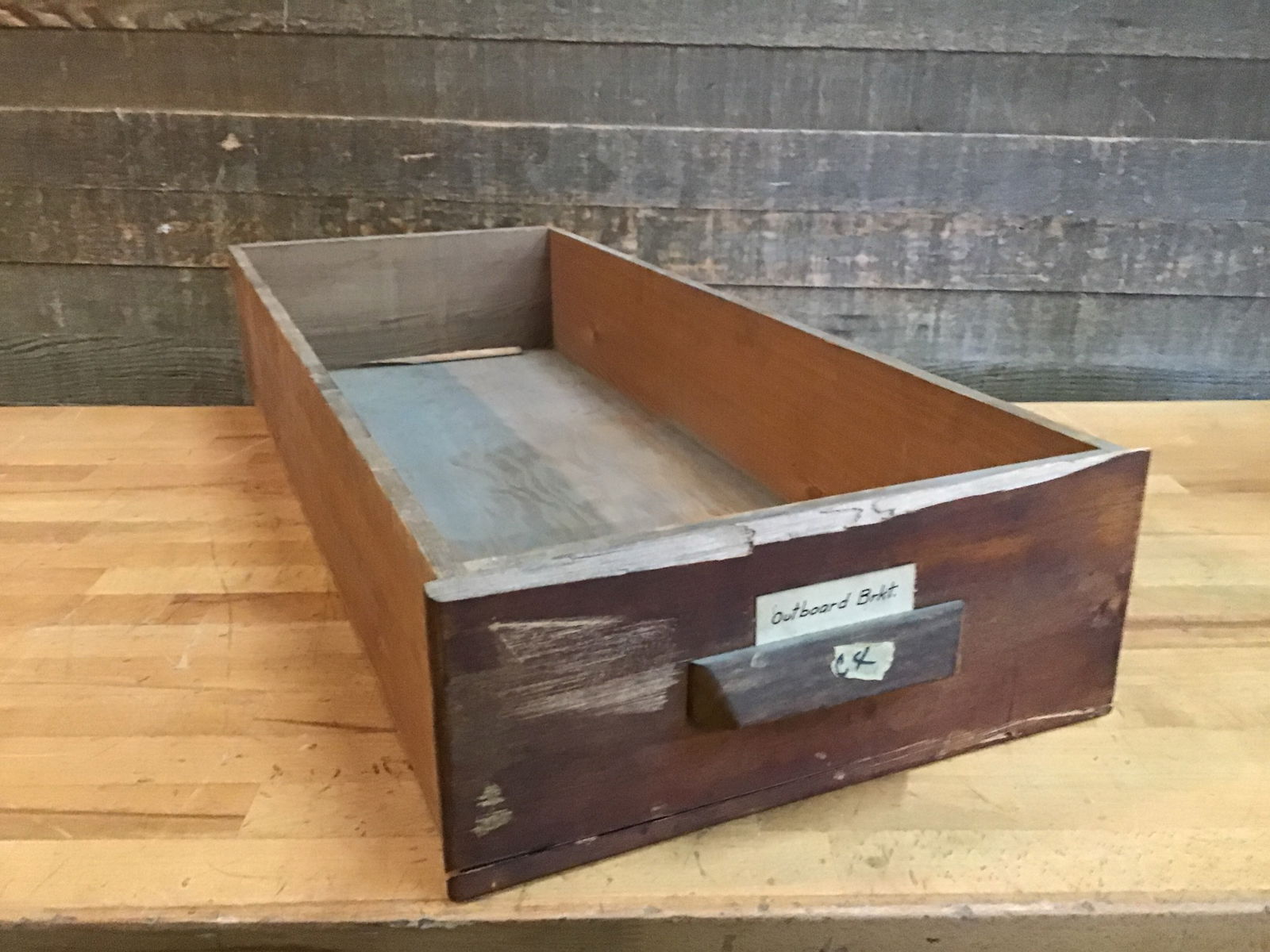 Vintage Fir wood drawer with a cute wood handle, from the Willits Brothers original shop. A great piece of local history to help keep your work space organized!