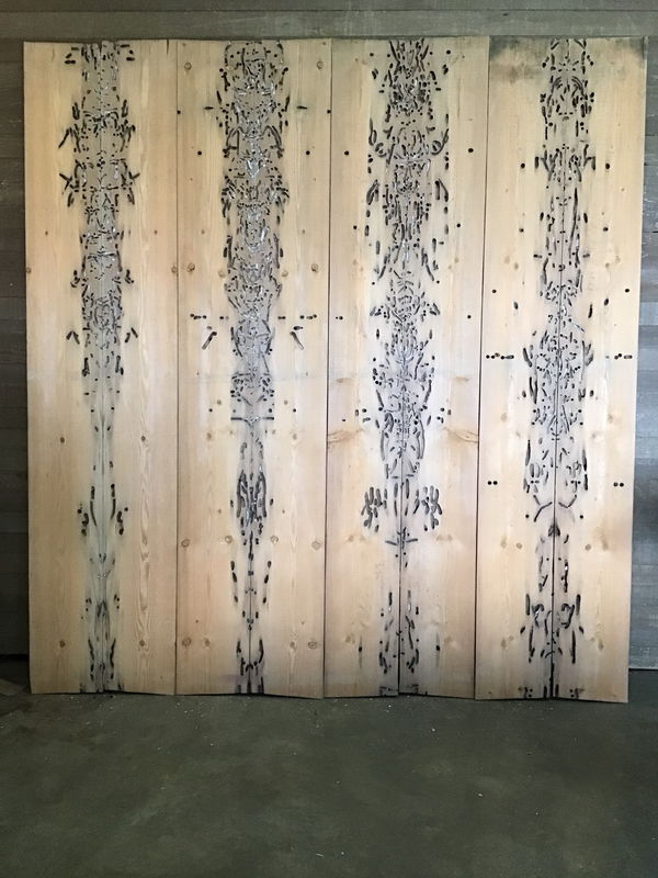 Locally milled & kiln dried, reclaimed, old growth Fir that was formerly submerged in local saltwaters & used in the Pacific Northwest timber transport trade. Traces of life long gone can be seen here, from the beautiful channels left behind by the seafaring teredo clam to the tiny punctures of the gribbles who settled in afterward - the handiwork of annelids, mollusks, and anthropoids have all been made visible. Dimensions listed is for the set together.