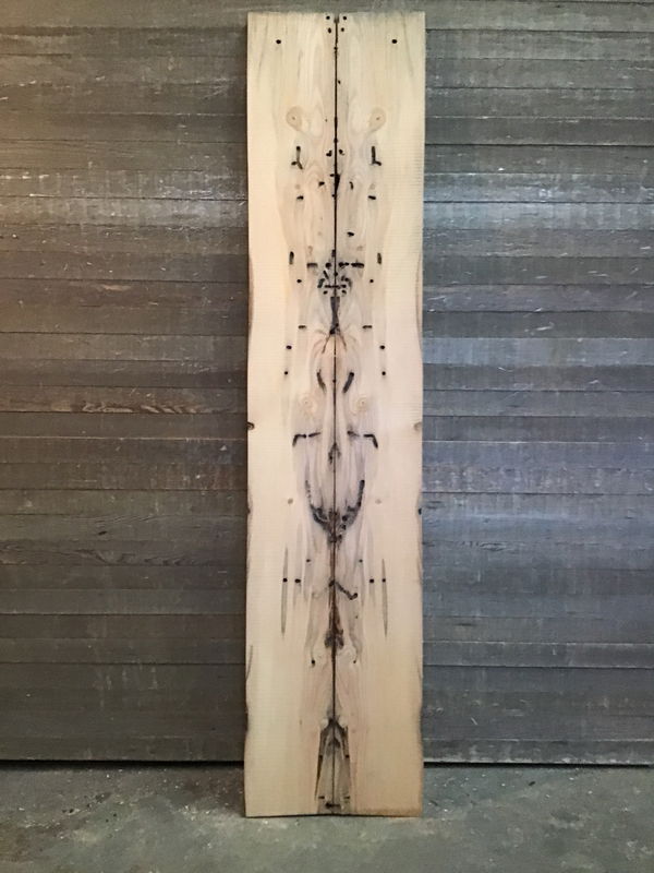 Locally milled & kiln dried, reclaimed, old growth Fir that was formerly submerged in local saltwaters & used in the Pacific Northwest timber transport trade. Traces of life long gone can be seen here, from the beautiful channels left behind by the seafaring teredo clam to the tiny punctures of the gribbles who settled in afterward - the handiwork of annelids, mollusks, and anthropoids have all been made visible. Dimensions listed are for the pair together.