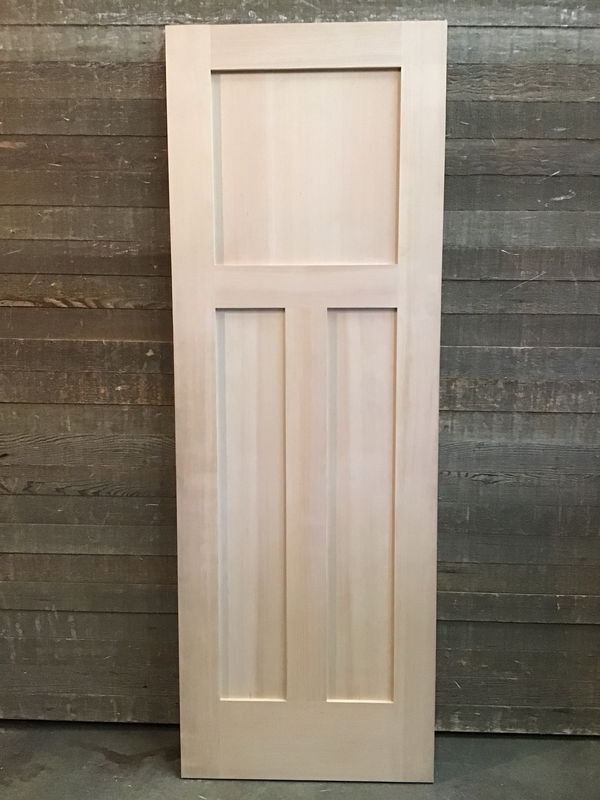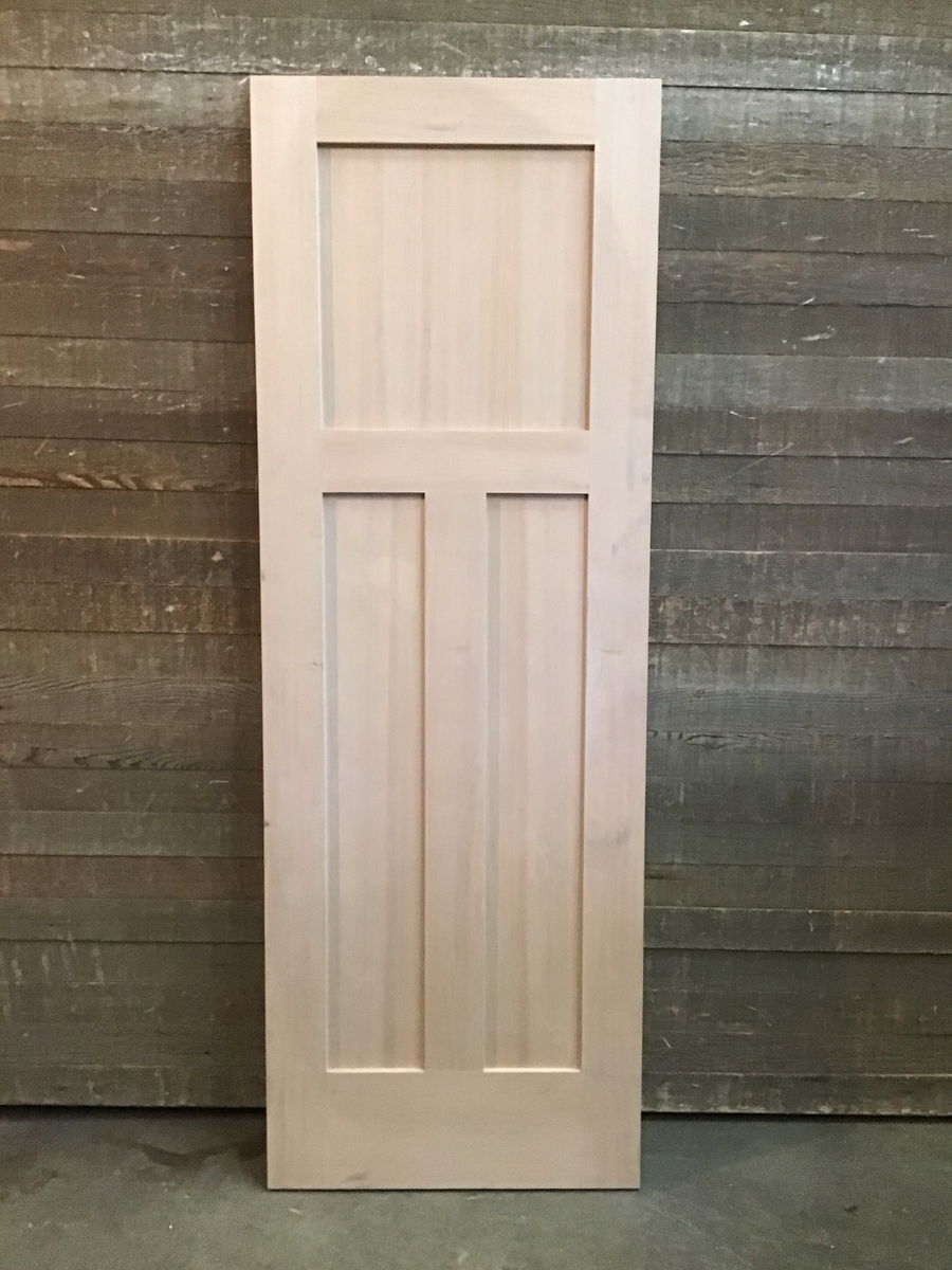 New, never installed 28" three shaker panel raw Fir door with a classic Craftsman layout. No hinge cuts or bore holes. May have minor cosmetic damage.
