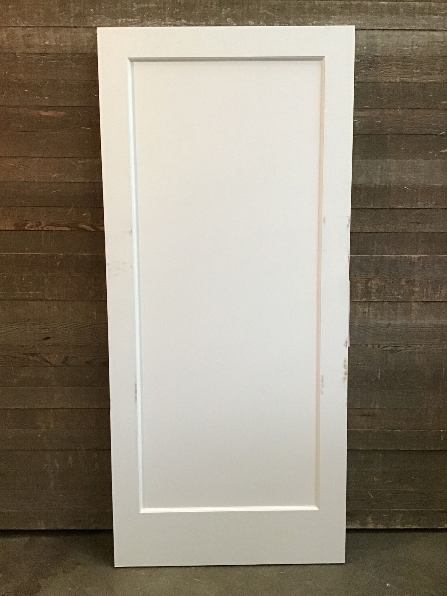 36" single panel interior door with a primed hardboard veneer. No hinge cuts or bore holes. Ready to be painted the color of your choice. There's some damage to the primed veneer on one of the edges. Price reflects.