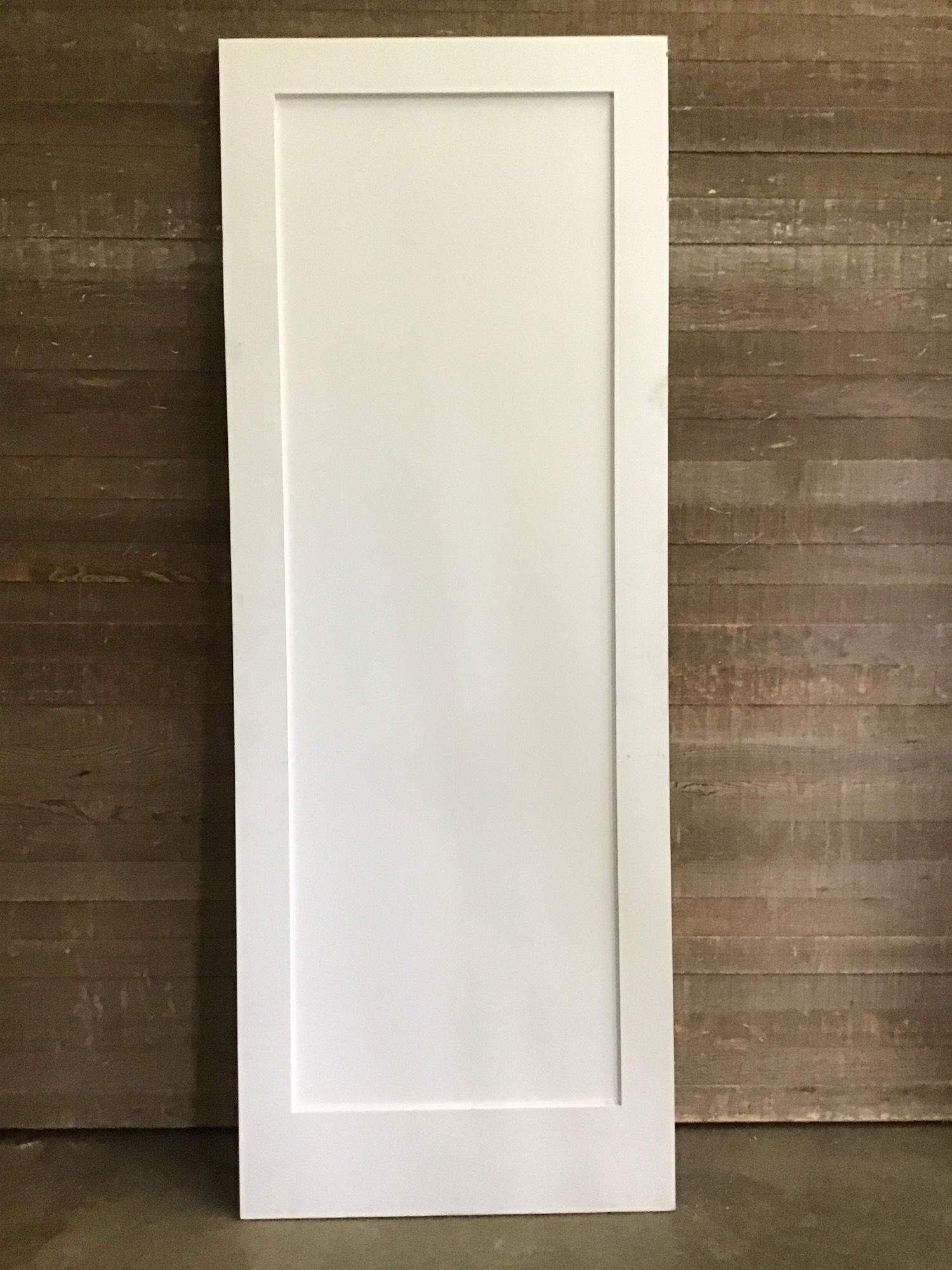 8' tall, primed MDF interior door. Never installed before but does have some marks and small scratches. Nothing that wouldn't dissapear with a paint job. We'll try to photo any major imperfections!