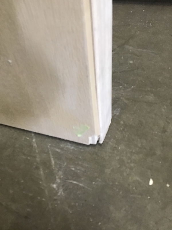 In fantastic shape Thermatru exterior door with thermopane glass and a stylish leaded glass pane in between to obscure it. Only issue is the weirdly tall hardware hole bored into it. Might be a plus for someone with a toddler that's too eager to explore outside by themselves.