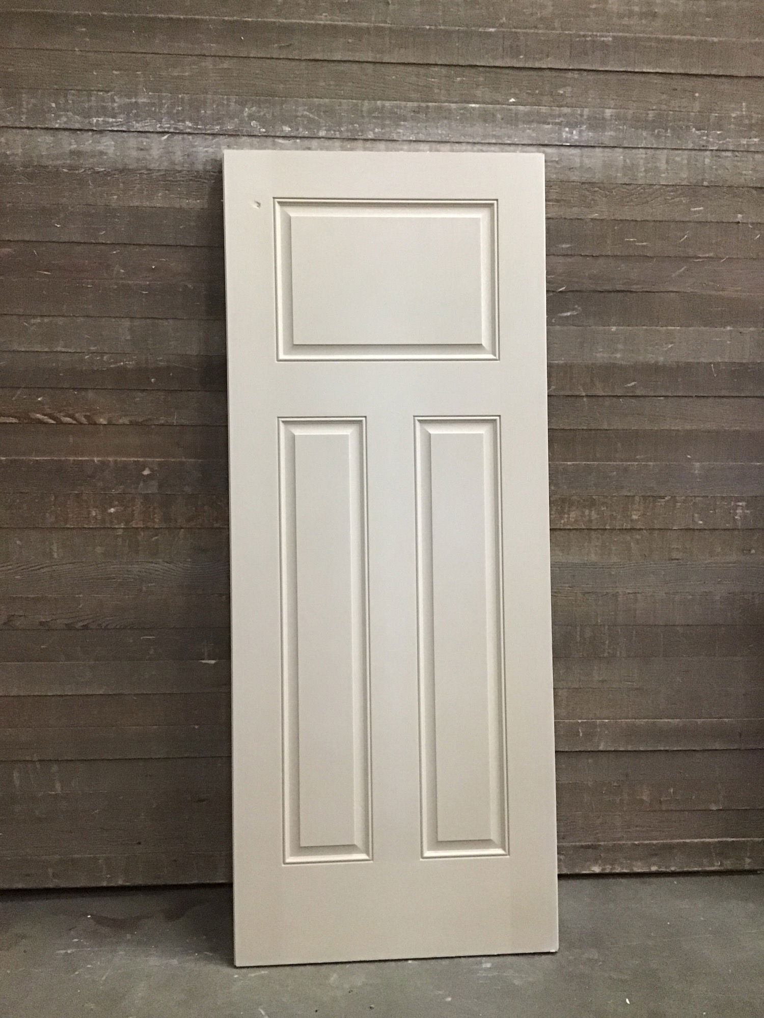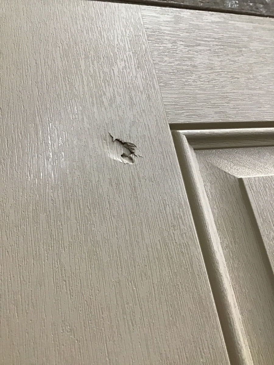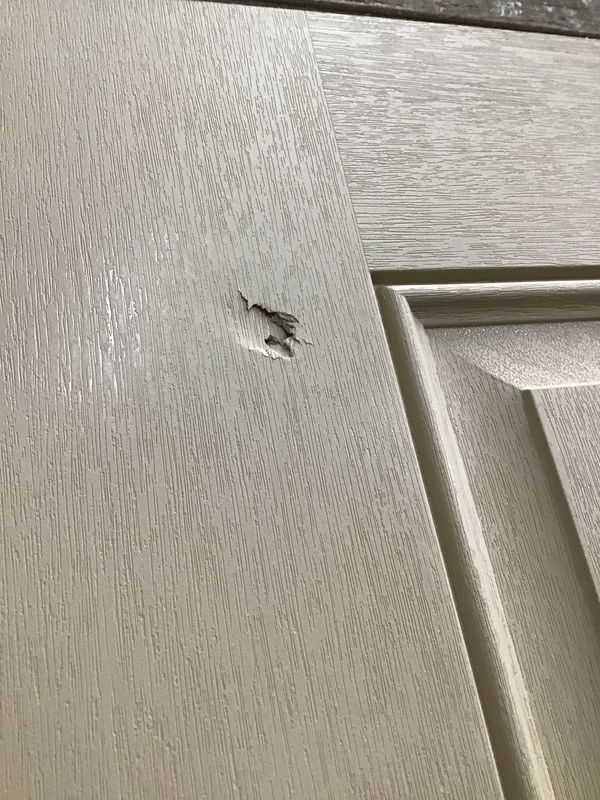 Fiberglass clad exterior entry door in great shape and never installed. Has some marks and smears but nothing that won't go away with it's initial paint job.
