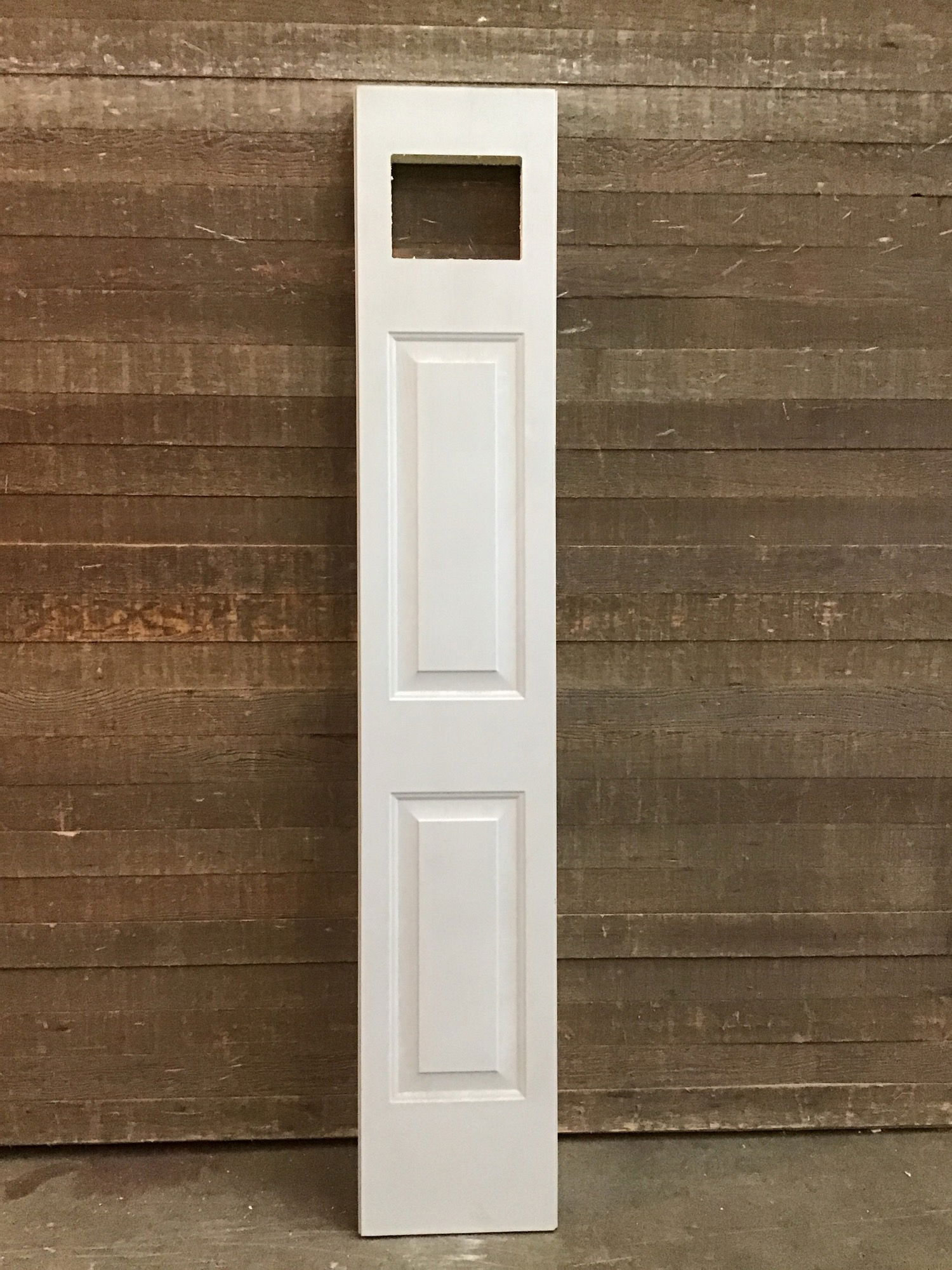 14" Exterior 2 Faux Panel sidelite. Cut out for glass lite on top but has not had glass installed. Exterior thickness with no hinge or bore cuts. Would make a great sidelite.