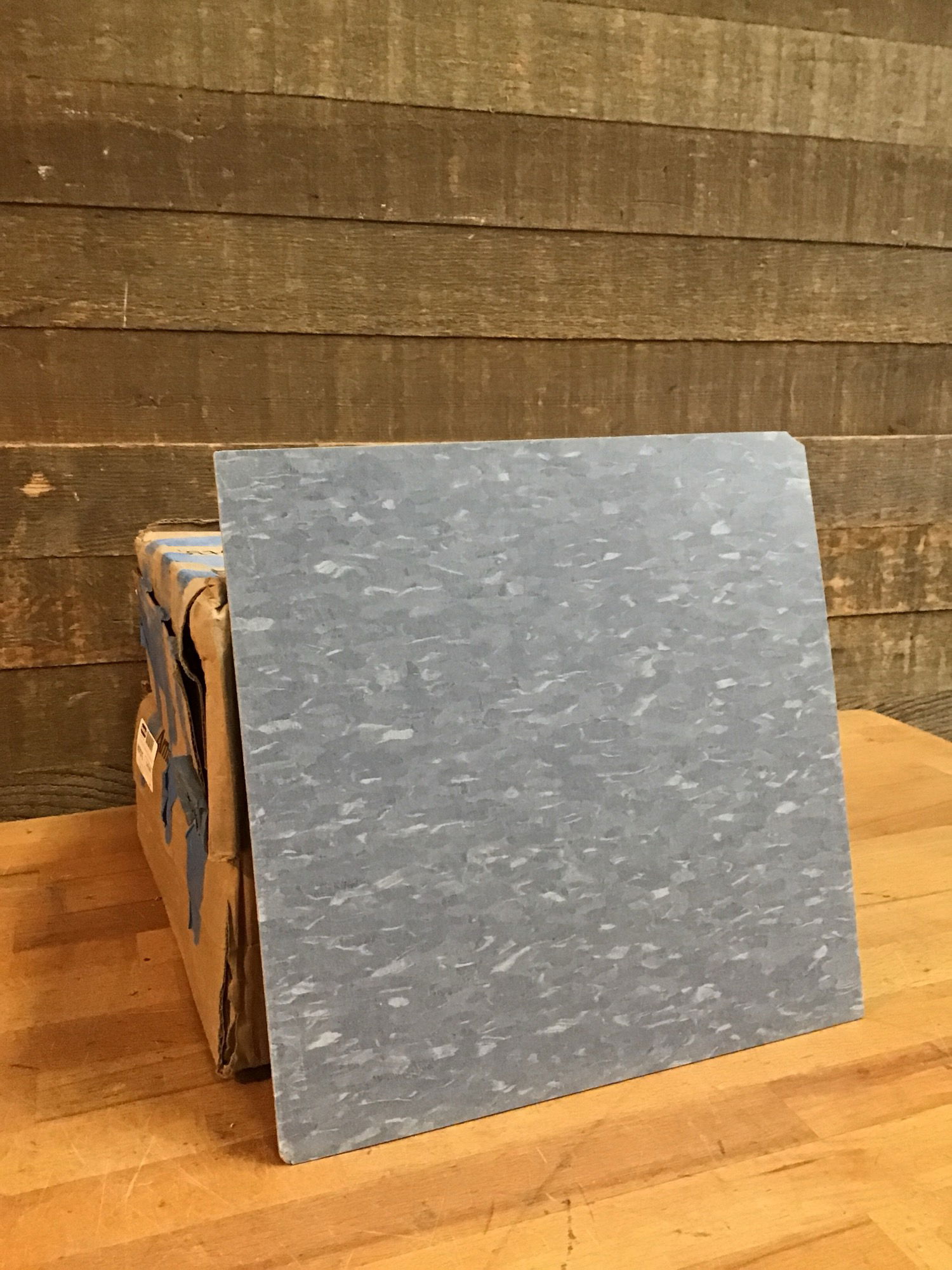 90 Sq Ft Lot of Armstrong Vinyl flooring tiles in a "Heather Blueish" Color. 12" x 12" x .125". 90 tiles in total.