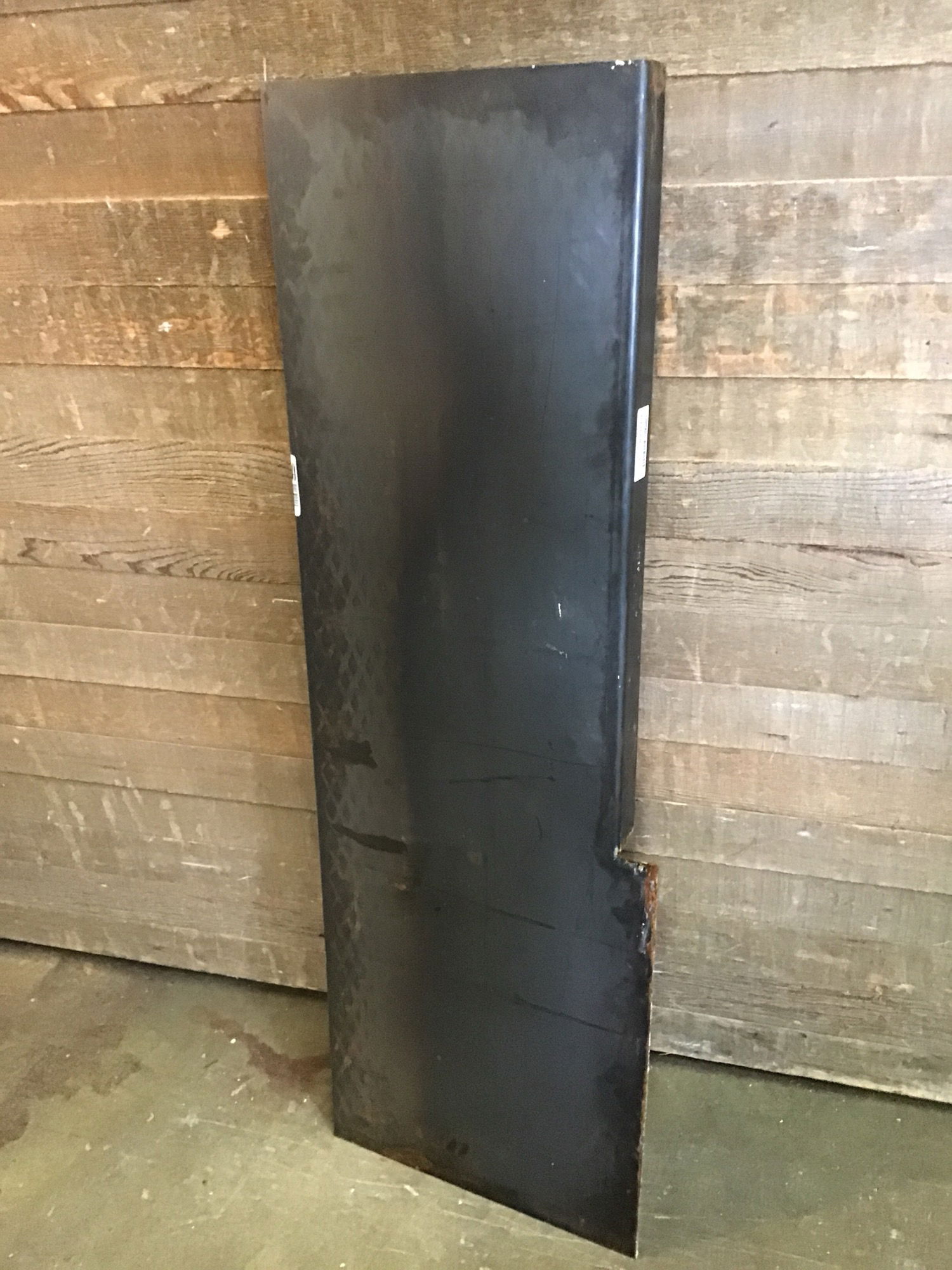 Small steel slab with one side partially bent. Would make a good work shop shelf or shallow countertop work space. Steel is 1/8" thick, and the bent part is 2".
