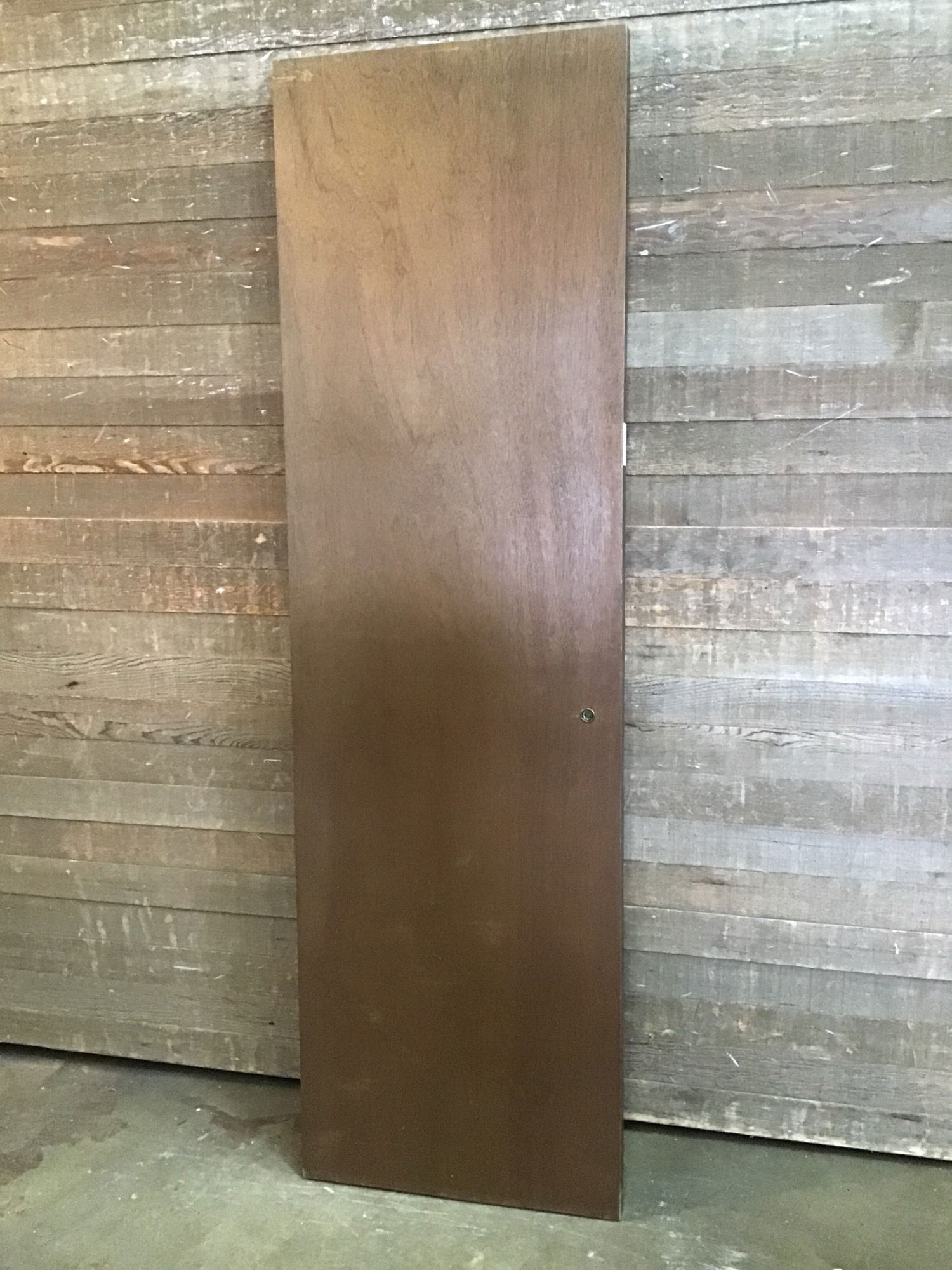 24" hollow core door with a dark stained Lauan veneer. Was a bypass closet door so no hinge cuts. Some minor wear, price reflects.