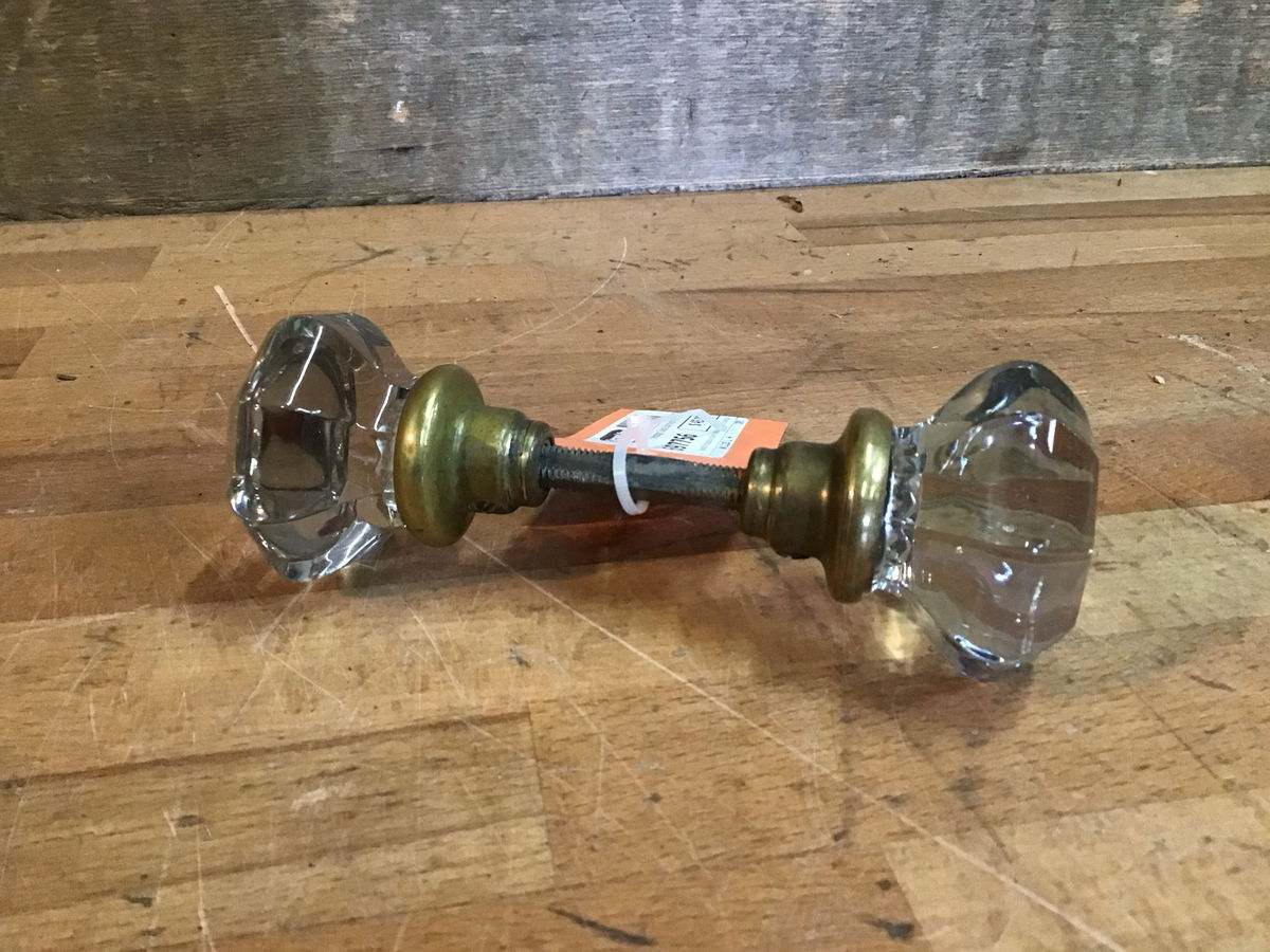 Beautiful octagonal vintage glass door knob set. Incudes spindle and set screws. Ready to compliment your vintage door hardware.
