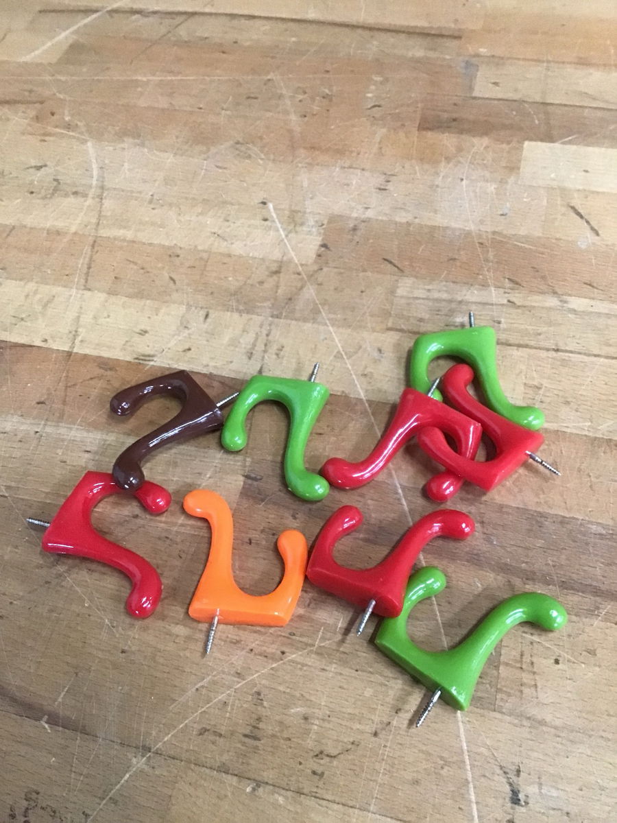 9 vintage 70's screw mount hooks. Made in Hong Kong.