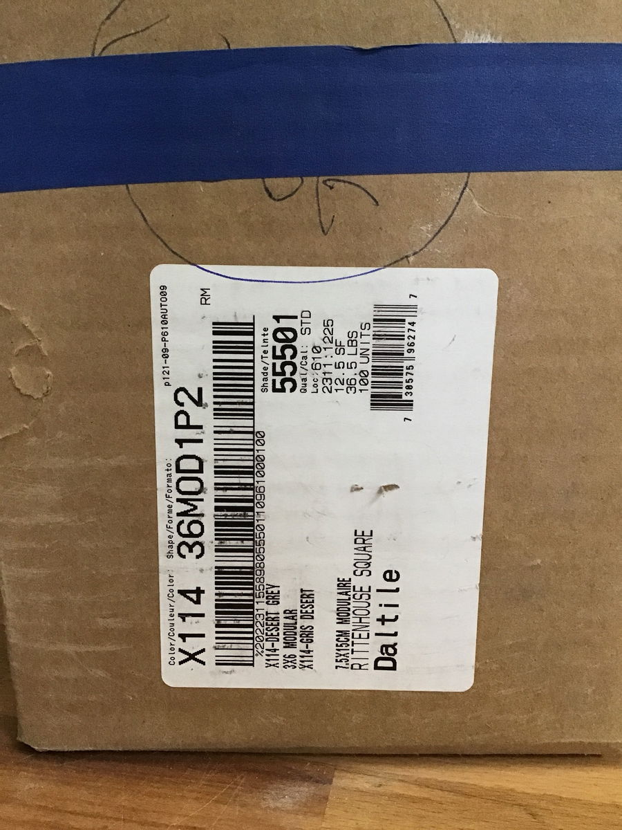35sqft lot of Daltile desert grey ceramic wall tile. 2 complete boxes with 100 tiles per box/ 12.5sqft per box. 1 incomplete box with 85 tiles, that box is 10.63sqft.