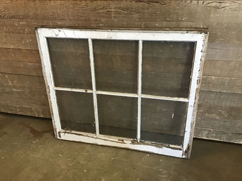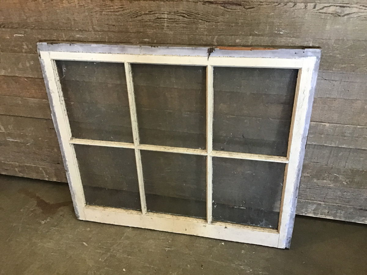 Vintage wood window sash true divided into 6 panes. Great for DIY projects like cold frames, green houses, or hanging partitions.