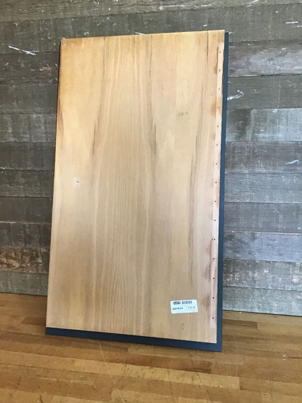 Unframed mirror with decorative hardware and a thick plywood backing. Was once the door to a built in medicine cabinet, but you could easily add some wire to the plywood back and make it a wall hang mirror.