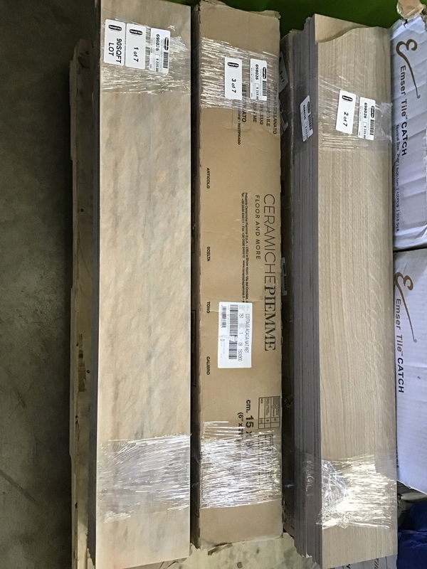 90sqft of Ceramiche Piemme Italian porcelain tile. Color is called "Cottage Acacia Nat/Ret." 7 box/bundle lot, 9 tiles per and about 13.50sqft per box. I rounded way down because of some damage I saw on some tile. This lot would cost you $400+ in the real world. Good thing this is a salvage yard!