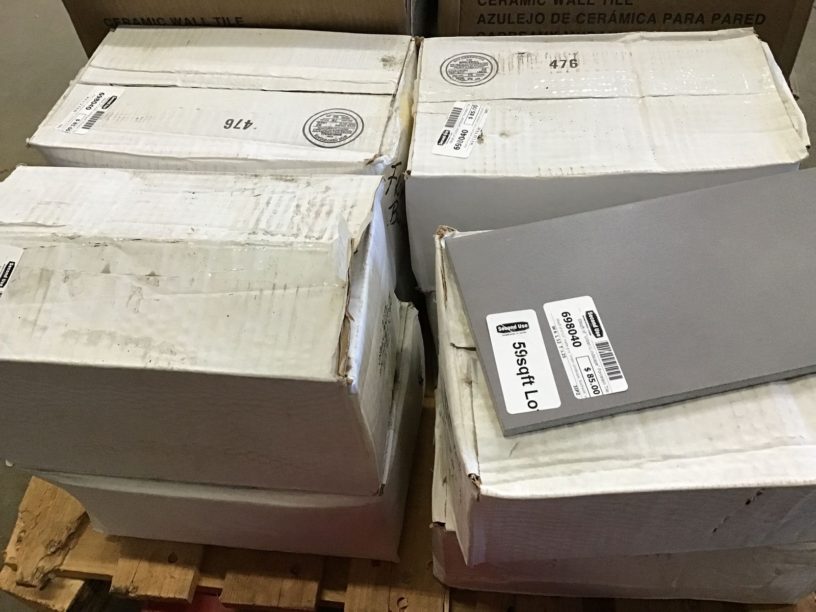 59sqft of 6"x12" matte grey "Urban Landscape, Southside" porcelain tile. 7 complete boxes. 7.50sqft per box. 1 incomplete but is only missing 2 pieces.