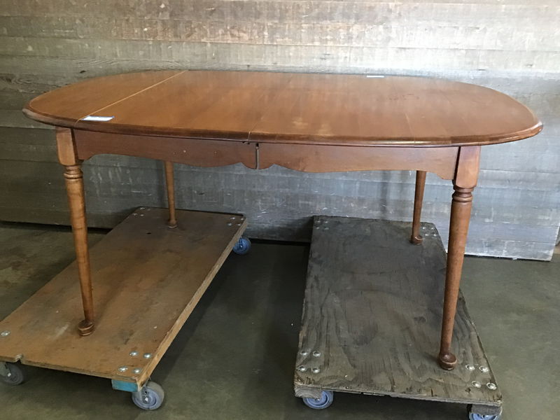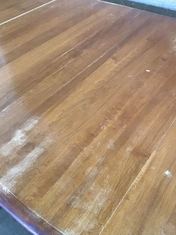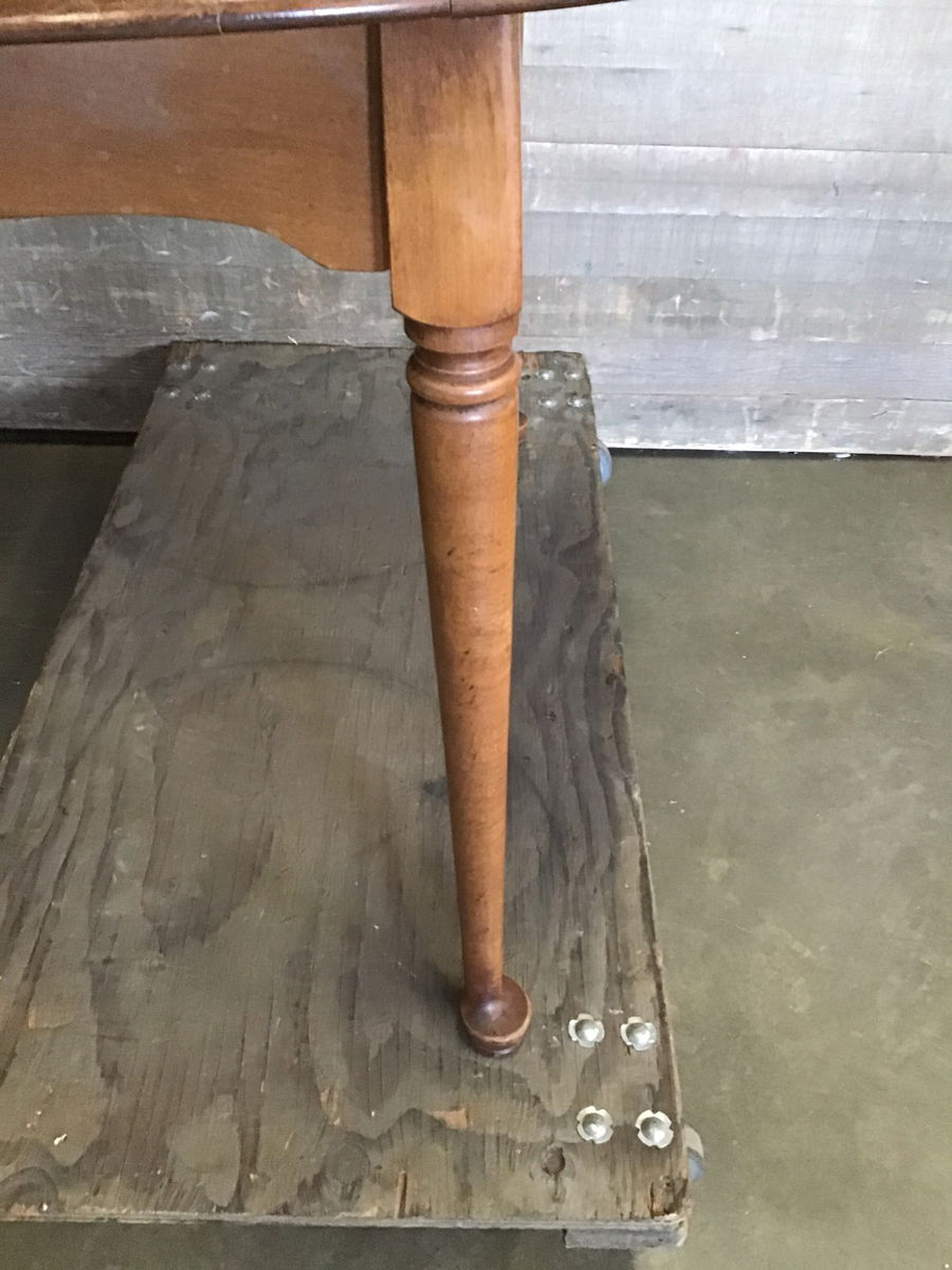Cute little dining table. Finish has some wear but not an unusual amount and feels solid. Legs are really easy to pop off with one screw on each, for transport.