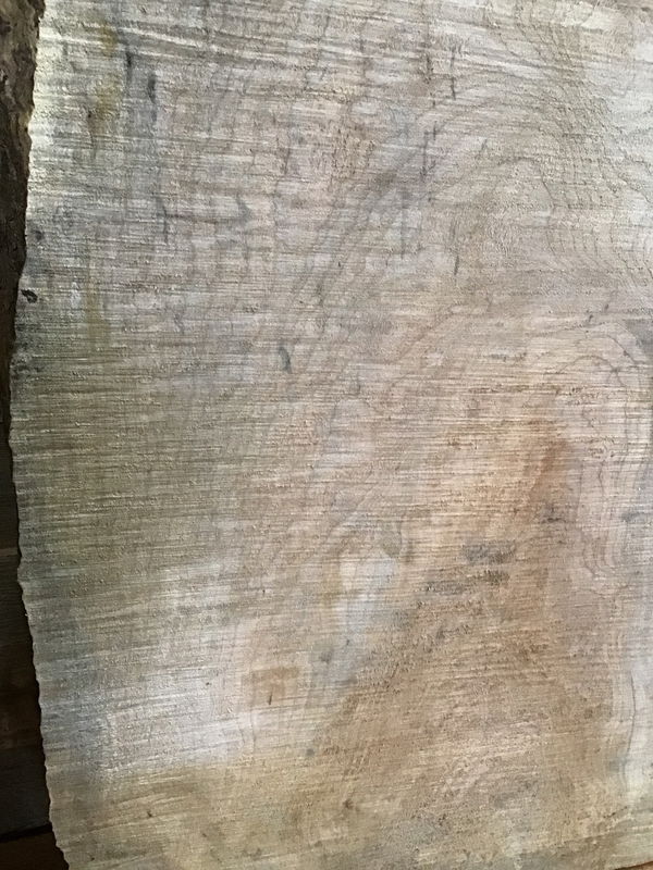 Locally milled from an heirloom Maple tree in Tukwila that was on the golf course. Has cured in dry storage for over a decade. The tree had been storm damaged too many times over the years and had to be taken down. The whole tree was incredibly figured and some areas developed crazy spalting. At the time it was the oldest Maple in Tukwila. A few large slabs were used to make the dining hall tables at two Tukwila fire stations. This slab has an incredible amount of figure!!!! Tapers in width from 18" to 15". Roughsawn but very flat.