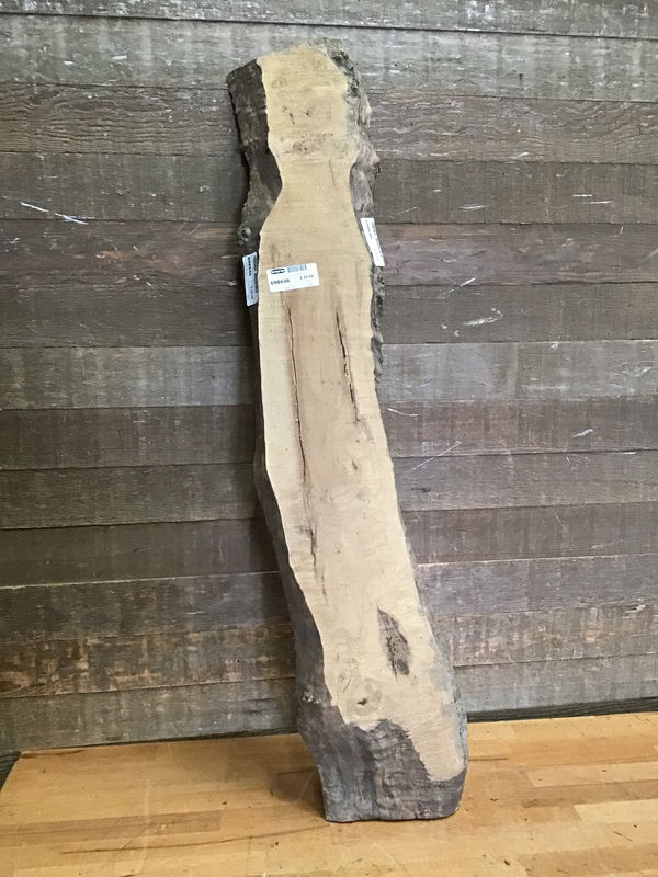 Locally milled from an heirloom Maple tree in Tukwila that was on the golf course. Has cured in dry storage for over a decade. The tree had been storm damaged too many times over the years and had to be taken down. The whole tree was incredibly figured and some areas developed crazy spalting. At the time it was the oldest Maple in Tukwila. A few large slabs were used to make the dining hall tables at two Tukwila fire stations. Has some checking. Tapers in width from 8" to 6".