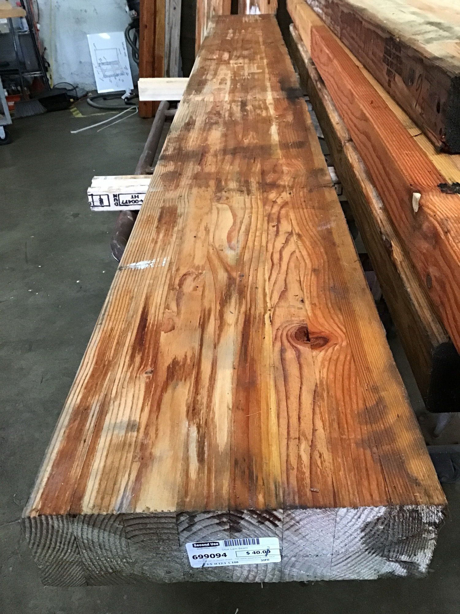 Fir glue lam in decent shape. Has some weathering, may have a bit of surface mold.