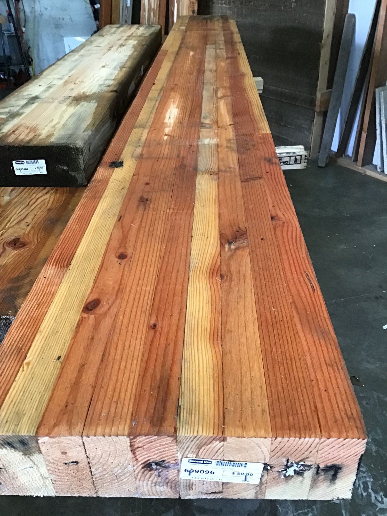 Fir glue lam in decent shape. Has some weathering, may have a bit of surface mold.