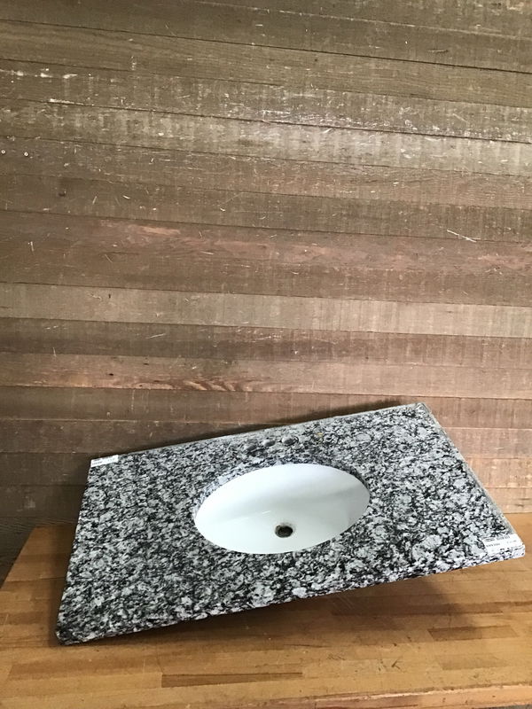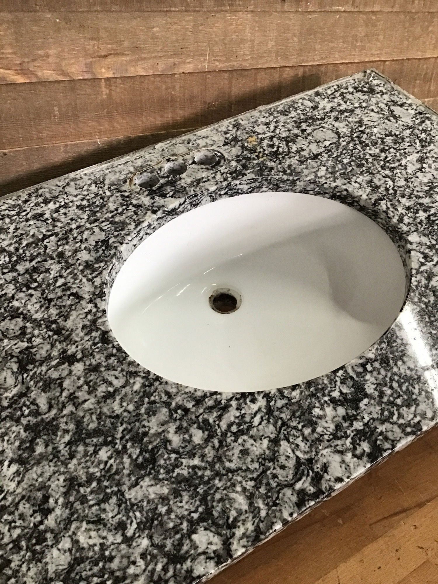 Bathroom sink with 1" thick granite top and finished edge on the front and left sides. Comes with 4" centers faucet holes.