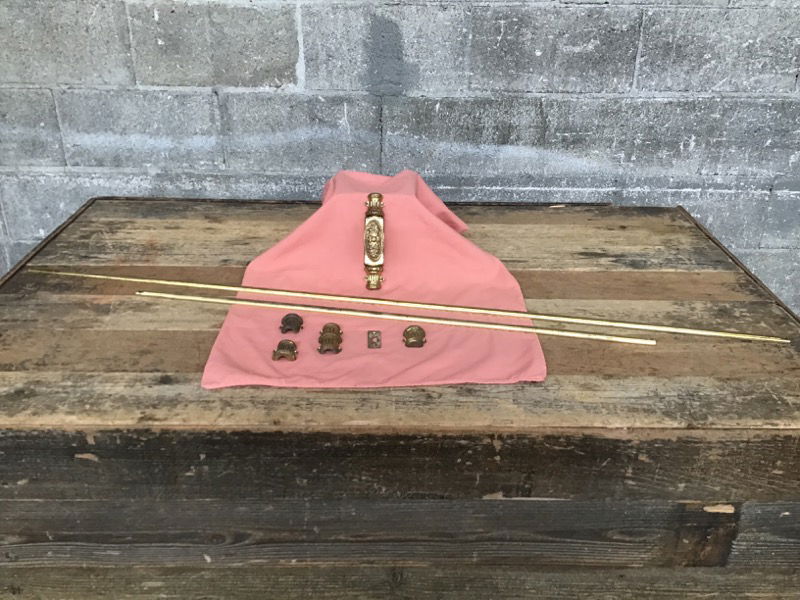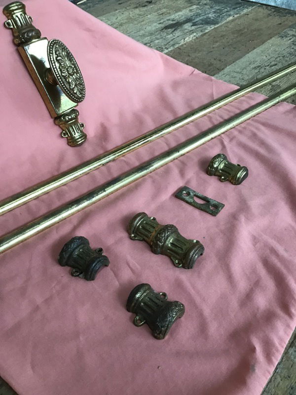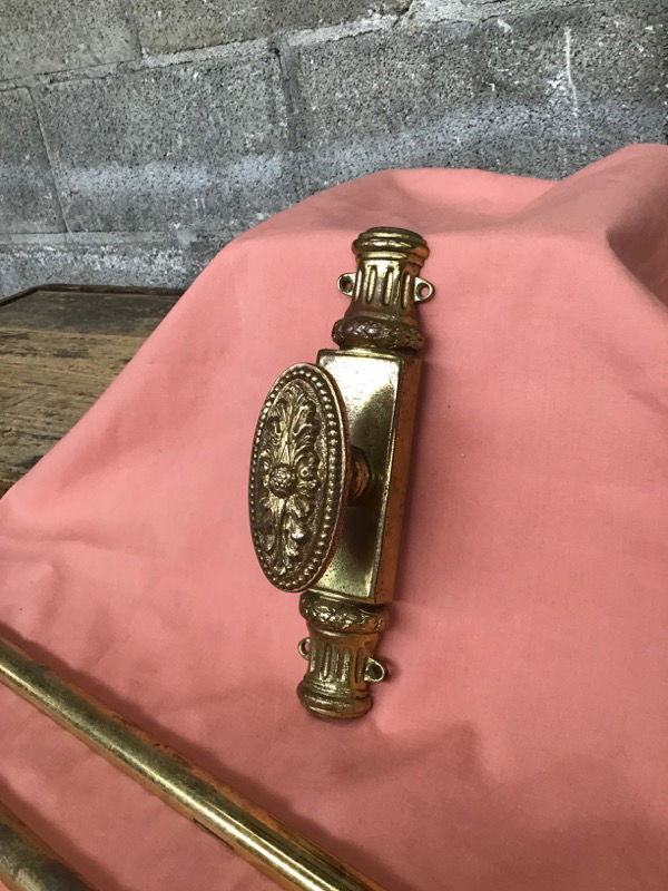 Absolutely gorgeous, solid brass vertical door bolt with its knob & hardware in a neoclassical motif. You'll likely use this on one side of a double door. The knob assembly will need to be reassembled, but it's not complicated. When in the unlocked position, this fits a door no higher than 83.25in.