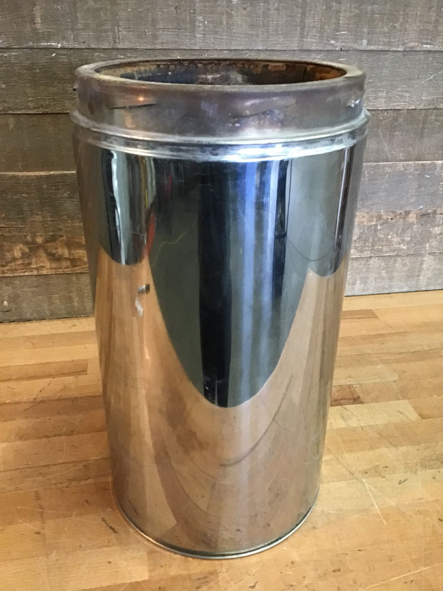 8" double wall, insulated stove pipe in good, used condition. Measures 18" in total length.