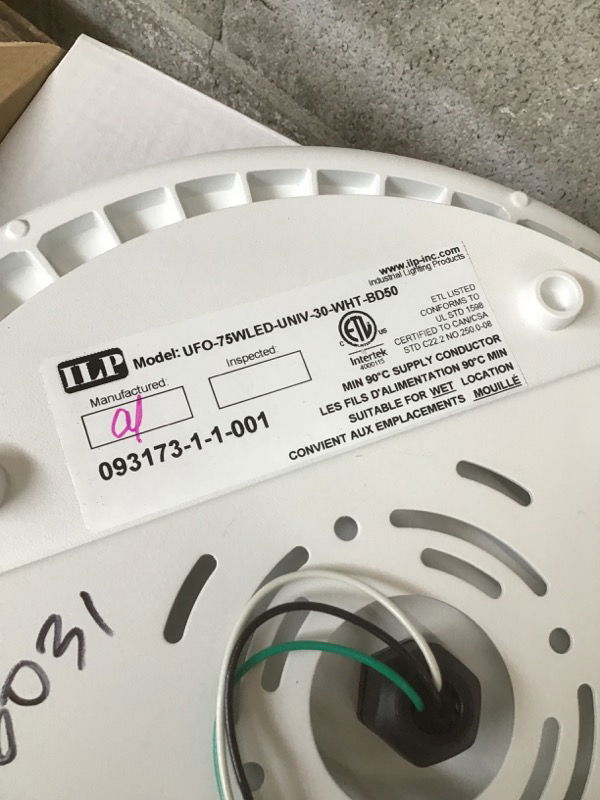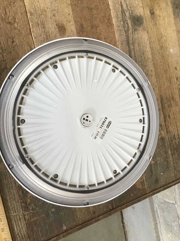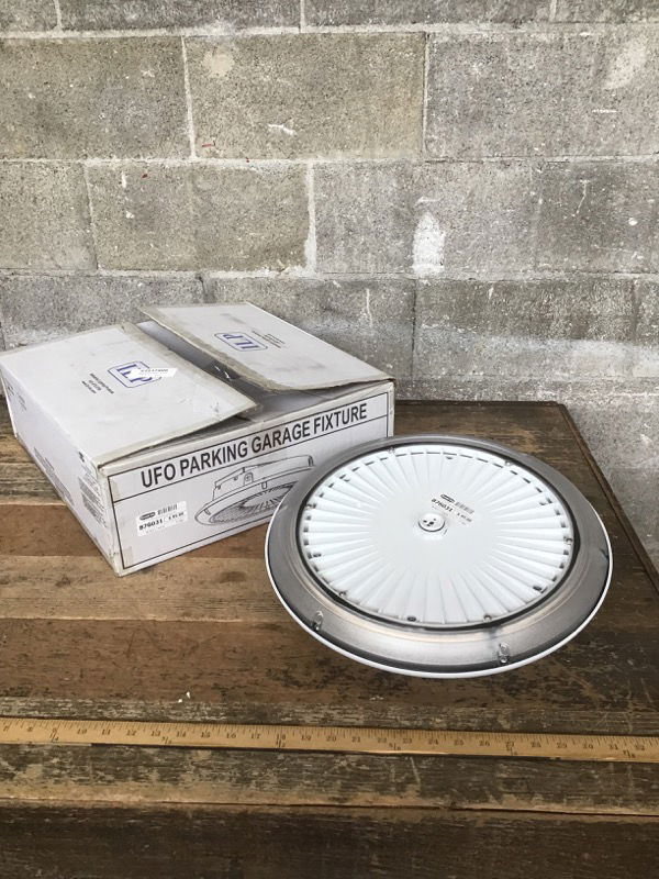 New in box, white ILP "UFO Parking Garage", 75 watt LED bulb with 100,000 hour working life. Retails starting at $288. Photo may be representational.