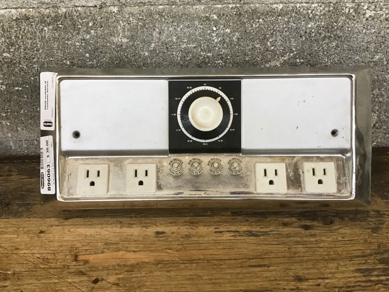 Vintage Bryant Electric panel with four outlets, a timer (knob doesn't quite stay on so well, but is still included), and a fabulous aesthetic. Sold untested, but the inside looks fine.
