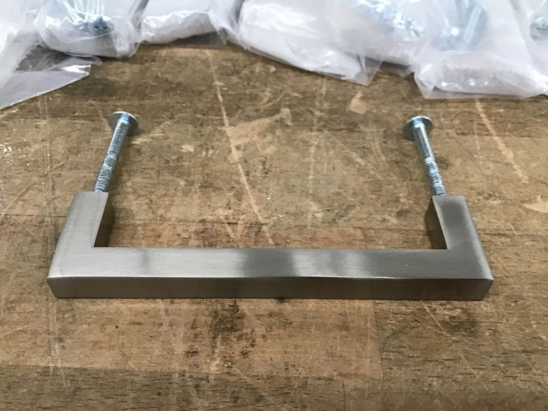 Package of nine brand new Elements "Stanton" cabinet pulls in a satin nickel finish. 3.75" on center. Check out full product specs here. Photo may be representational.