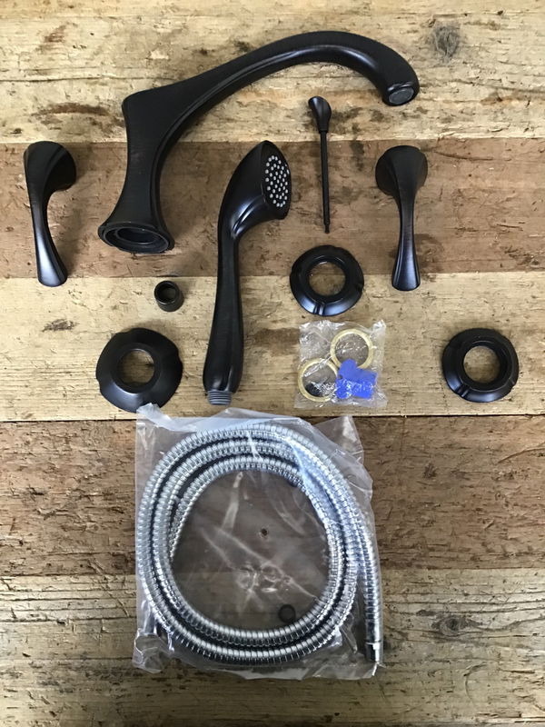 Delta "Addison" Venetian bronzed finished Roman tub trim kit with sprayer, model number T4792-RB. Never installed and still in packaging. Retails new for around $488.