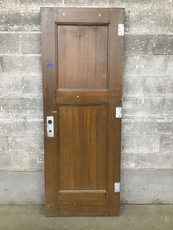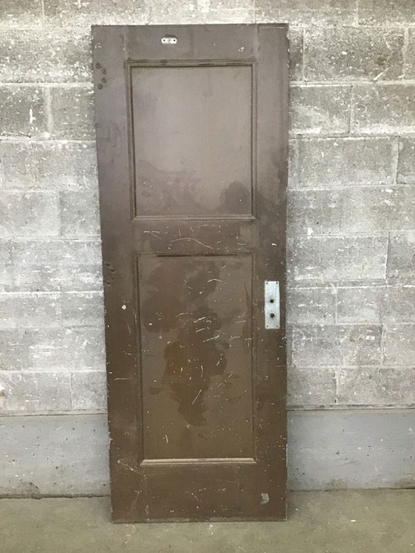 30" Vintage steel clad interior door with an exterior thickness & faux-Mahogany look. Came to use from St.Edwards state park from Kenmore Wa. Was previously a pocket door, and has hole bored from hardware that can be covered with plate.