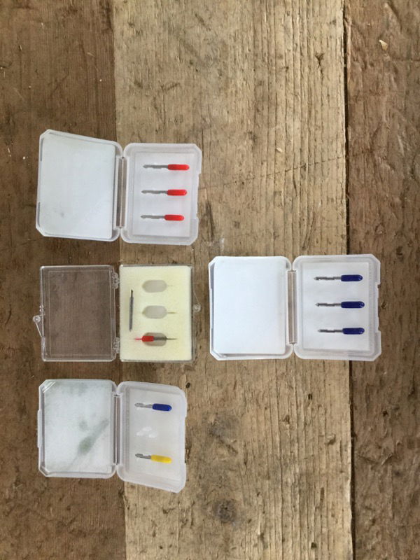 Replacement blades for a Vinyl cutter. All blades look new, and normally retail for around $15 each. This set includes: 4 - US Cutter 60 degree blades 3 - US Cutter 45 degree blades 1 - US Cutter 30 degree blade 2 - Roland blades (looks to be 45 degrees)