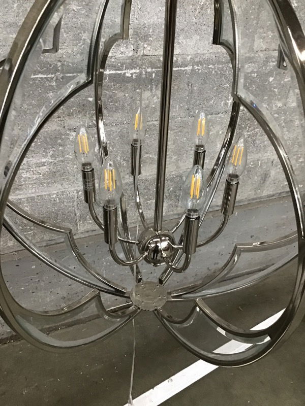 Montavello candelabra nickel chandelier. Currently retails for $1795. Details here Was a showroom display.