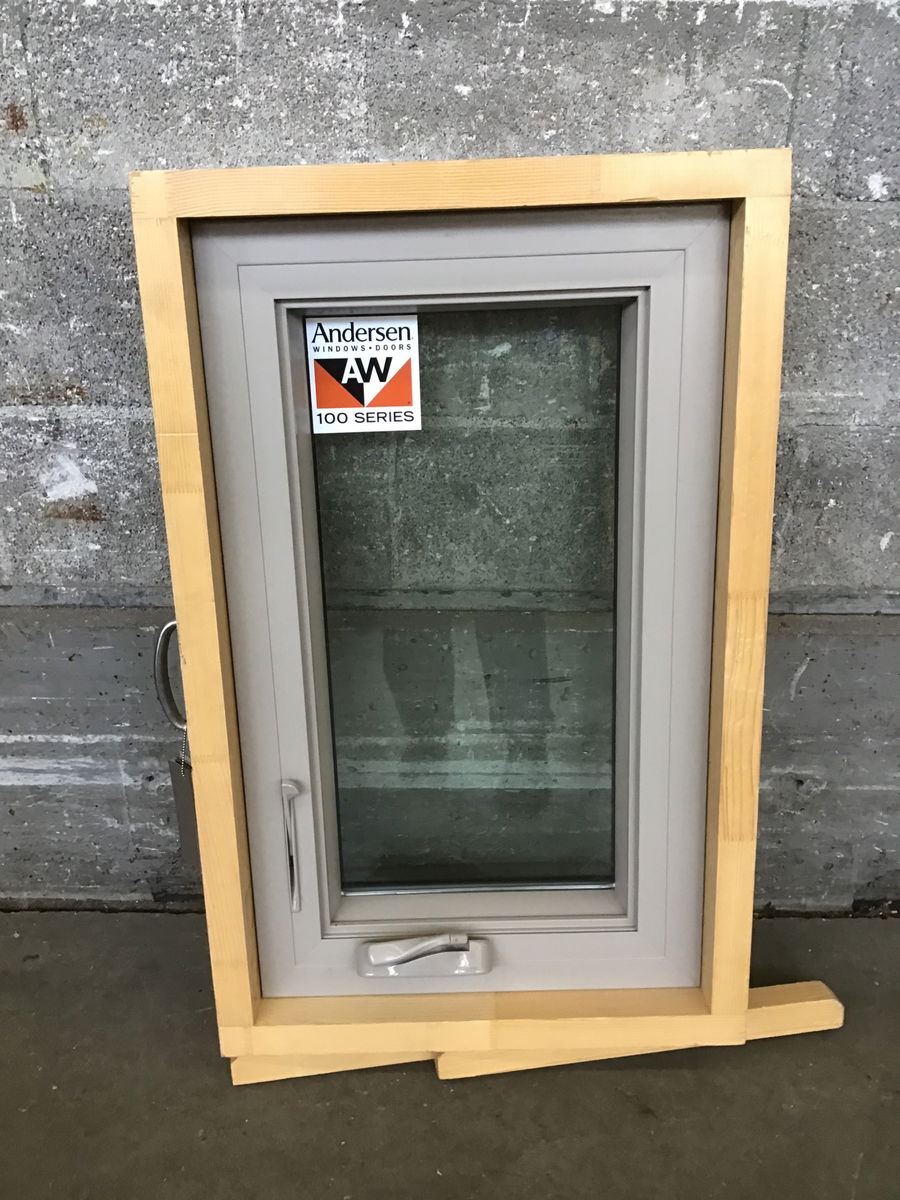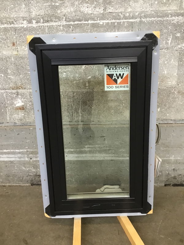 This small Andersen 100 Series fibrex casement window was previously a showroom display window and has never been truly installed or used. This one is black on the outside and beige on the interior.