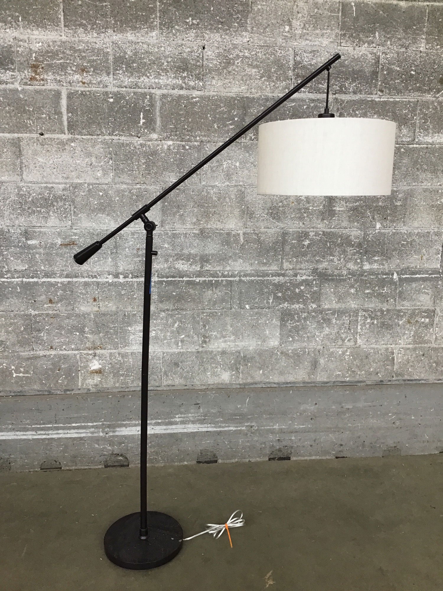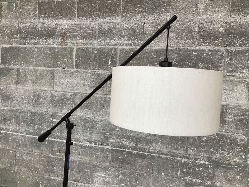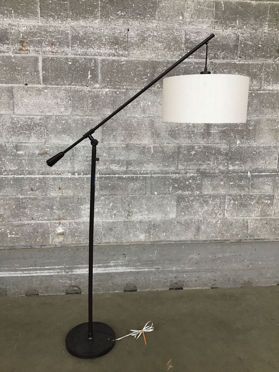 This floor lamp by Arcadia Collection Co. features a pendant shade, cantilever adjustability, a solid metal frame and a handsome burgundy/brown painted finish. Tested in house and is functional, this would be a great living room lamp. This retails new at $125.00.