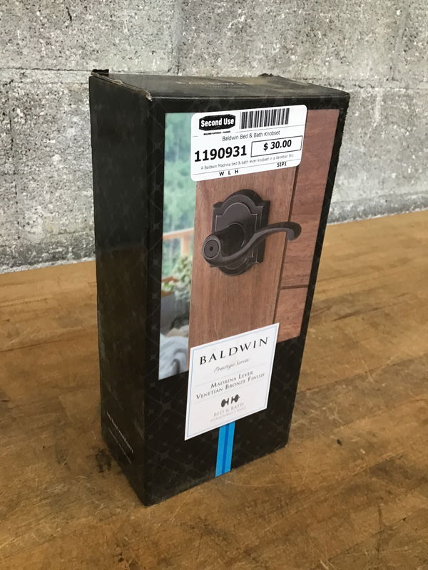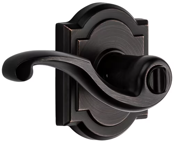 A Baldwin Madrina bed & bath lever knobset in a Venetian Bronze finish, with a thumblock. Retails new at HD for about $50.