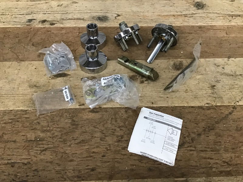 Polished nickle contemporary passage door knobset with round rose. Includes everything you need for installation plus instructions. Retails for $120