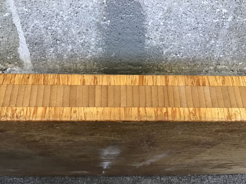 I believe this cutting board is made of bamboo, but it feels a lot like a paperstone type product. Has two edges that seem a little more finished than the other two, but none look horrible.