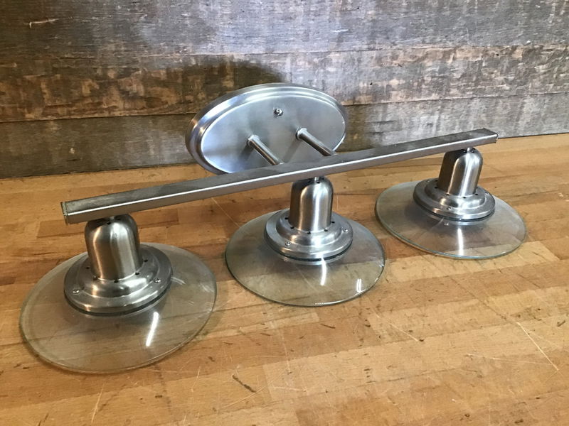 Bathroom vanity light with a brushed nickel finish and clear glass shades. Suitable for damp locations. Wiring looks good, though we always recommend a full test prior to installation.