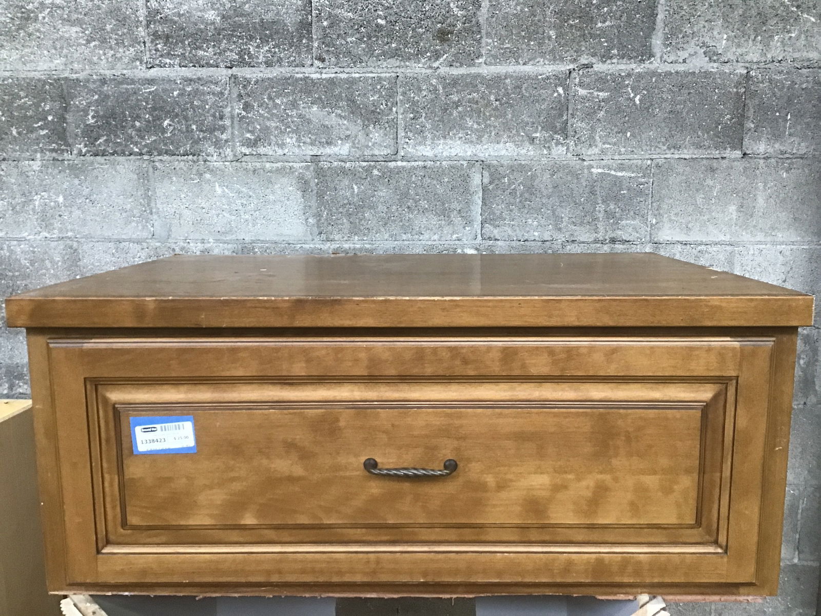 Short drawer base with a finished top. Could make a great hallway bench seat with some legs or a toe kick. Sides are not finished. Price reflects.